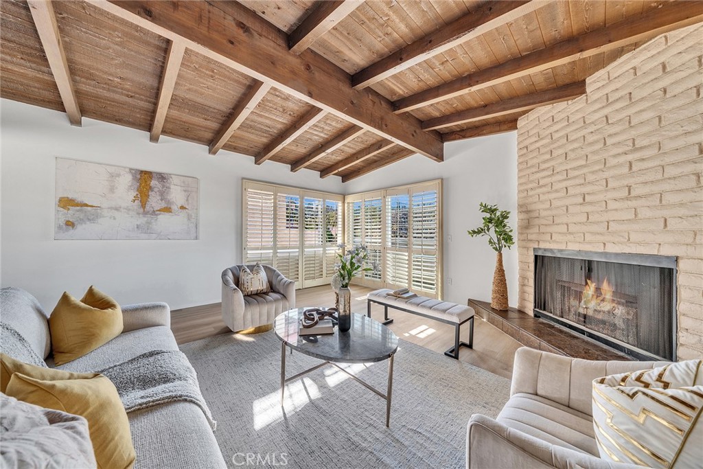 Welcome to this beautifully designed Walteria home tucked along a tree-lined street at the base of the Palos Verdes foothills where comfort, space, and indoor-outdoor living come together for the perfect Southern California lifestyle. With over 1,700 square feet of living space, this inviting two-story home offers a thoughtful layout ideal for everyday living and entertaining. The entry level features two spacious bedrooms, a full bath with quartz counters, convenient laundry, and a versatile bonus/storage room — perfect for hobbies, organization, or future customization. Upstairs, the home opens into a light-filled living space highlighted by dramatic wood beam ceilings, a cozy fireplace, plantation shutters, and a balcony overlooking the charming neighborhood. The adjacent dining area easily accommodates large gatherings, while the kitchen connects to a flexible nook that can serve as an office, play area, or creative workspace. The primary suite feels like a private retreat, featuring matching beamed ceilings and direct access to an expansive deck — an ideal setting for morning coffee, sunset dinners, or simply unwinding outdoors. A dual-access bathroom connects both the primary bedroom and living space for added functionality. Step outside and discover a backyard sanctuary filled with greenery, shaded lounging areas, and sunny open spaces. Stairs lead from the deck down to the yard, creating seamless indoor-outdoor flow perfect for entertaining or relaxing in your own private escape. Additional highlights include a direct-access two-car garage with driveway parking and location within the highly regarded Torrance school district. This home blends warmth, character, and lifestyle in one of Walteria’s most desirable neighborhoods — a place where everyday living feels just a little more special.