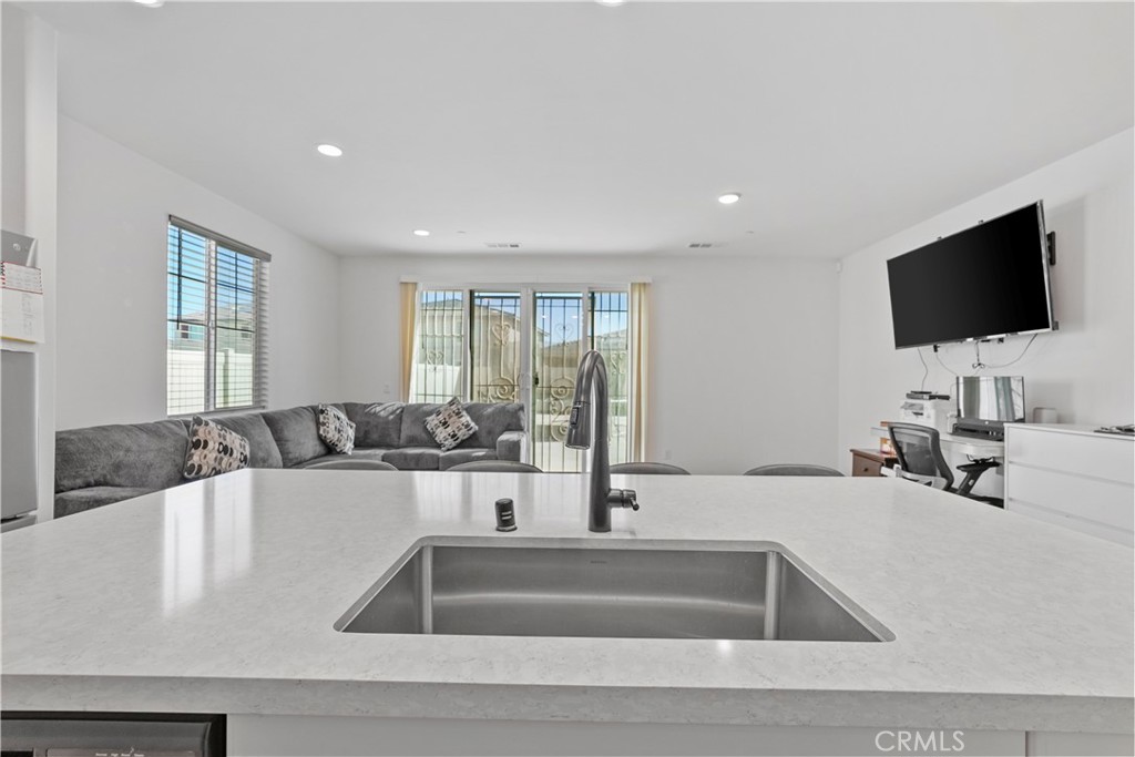 Modern and move-in ready home located in one of Perris’s newer communities. This single-story home offers a bright open floor plan with high ceilings and sleek finishes throughout. Spacious open layout, which features white shaker cabinets, quartz countertops, a large island, stainless steel appliances, and matte black fixtures. The open layout is perfect for entertaining or relaxing with family, with plenty of natural light filling the space. Unlike most new construction homes, this one already comes with a fully finished backyard that includes concrete throughout. You’ll save thousands on landscaping costs and have an outdoor space ready for gatherings, barbecues, or your personal touch. Additional highlights include: Paid-off solar system Upgraded flooring and recessed lighting Low-maintenance front and backyard Backsplash Located near schools, parks, shopping centers, and major freeways, this home offers comfort, convenience, and value without the wait or added costs of new construction.