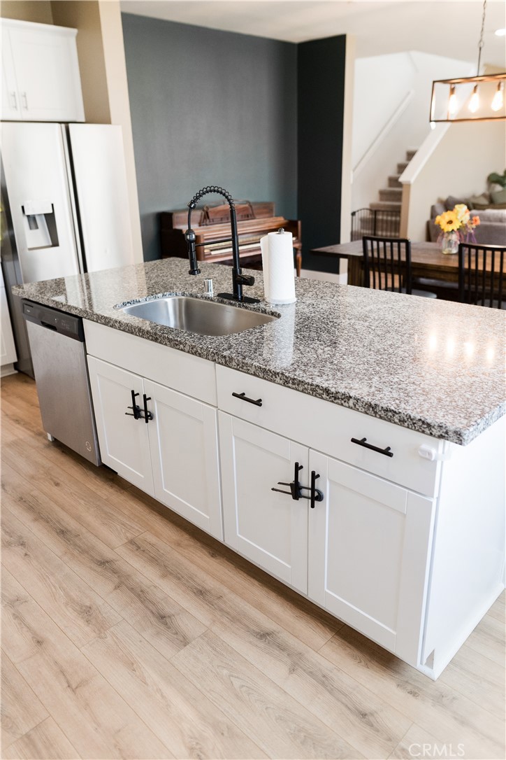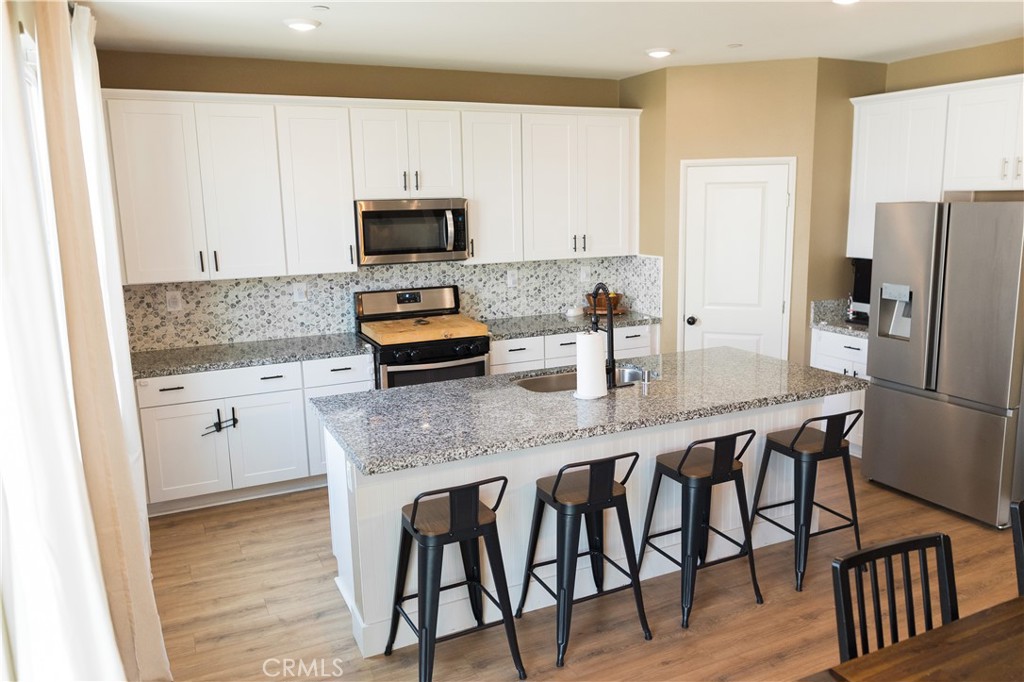 Four-bedroom, three-bath home in one of Moreno Valley’s newest, well-kept developments. Built just five years ago and shows like a model. Beautifully landscaped front and back yards, two-car garage with epoxy flooring, and a bright open great-room layout with 9-foot ceilings, fresh paint, large windows (professional shades are off but come with it), and sliding glass door to the backyard. Spacious kitchen with island, pantry, matching backsplash, and room for a full dining table, all open to the living area. One bedroom and full bath downstairs, with the primary suite upstairs featuring a walk-in closet, plus two additional bedrooms with large closets and a convenient upstairs laundry room. Located near a gated community park and the San Juan Bautista De Anza walking trail just steps away, with picnic areas, BBQs, play equipment, and sport court. Close to schools, shopping, freeway access, and Moreno Valley College. Clean, well-maintained, and move-in ready.
