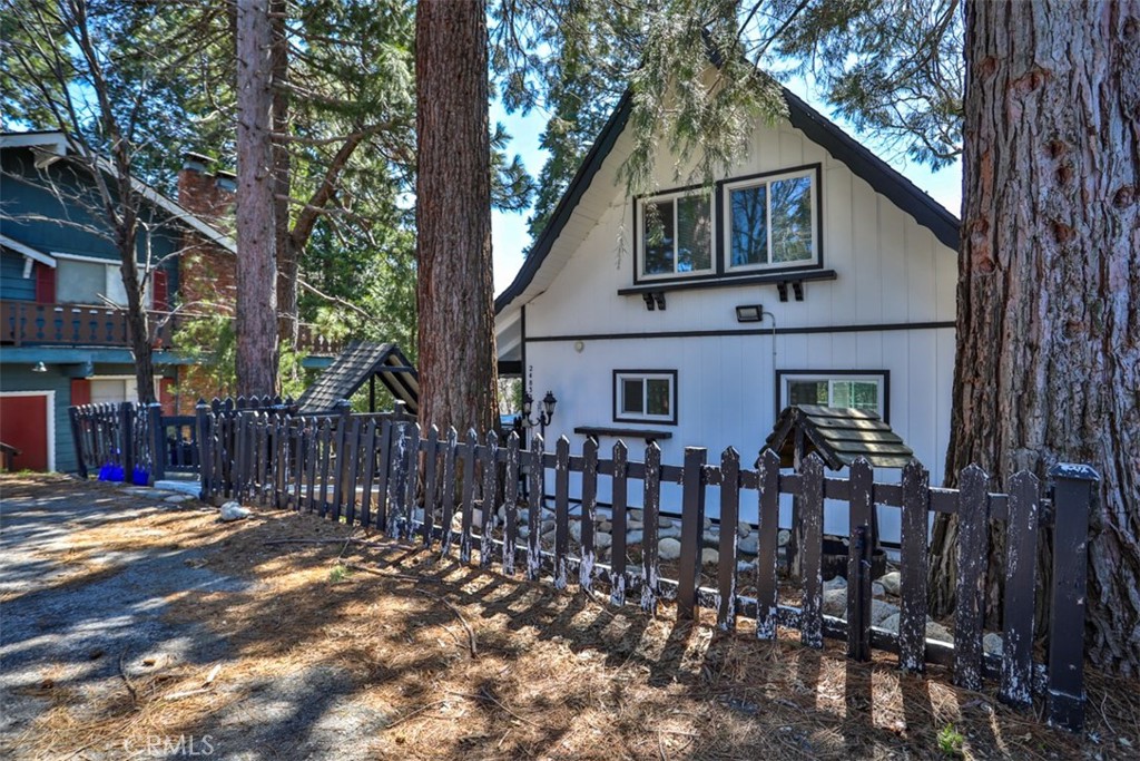Escape to the serene, alpine beauty of Crestline with this charming A-frame cabin that blends classic architecture and modern comforts. Nestled less than a mile from the picturesque Lake Gregory, adventure awaits with hiking trails like Crestline Canyon, Heart Rock, and Strawberry Peak nearby. Step inside to the soul-inspiring living room with soaring, two-story vaulted ceilings adorned with natural wood and open beams, creating a warm and inviting ambiance. Awash in natural light from two-story windows framing stunning mountain views, the living room offers a perfect retreat to unwind and make memories. Enjoy cooking up a great meal in the upgraded kitchen, featuring granite counters, custom tile backsplash, and pendant lights over the breakfast bar. Central heating, ceiling fans in each bedroom, and dual-pane windows ensure year-round comfort, while the cozy fireplace beckons for relaxing evenings. Fully remodeled with laminate flooring and custom lighting throughout, this retreat is move-in ready. The upstairs loft offers a second, cozier living space with a beautiful view and a cathedral-ceilinged bedroom. Downstairs, you’ll find three additional bedrooms, a fully remodeled bathroom, and the washer and dryer. One of the bedrooms does have a closet and is currently used as a game/storage room. Relish in evergreen, mountain vistas from the wraparound deck, perfect for stargazing or savoring your morning coffee. With Lake Gregory less than a mile away, enjoy fishing, boating, or a leisurely stroll along the scenic trail. Crestline’s shops and restaurants are less than two miles away. Looking for a turnkey combination investment and vacation home? This one is already registered for short-term rental (Airbnb/VRBO). The designer furnishings are available for separate purchase, allowing you to effortlessly get started. On top of all that, the electrical panel has been upgraded to 200 amps with load-balancing, and the water heater is new. Don’t miss the chance to make memories in this mountain oasis, tucked within the tranquil surroundings of San Bernardino National Forest. Be sure to check out the video and 3D tour, and welcome home!
