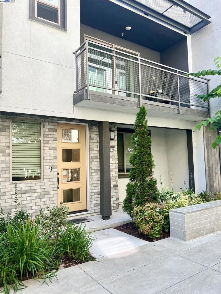 Experience Elevated Living in this beautiful contemporary design energy-efficient 2020-built townhome by Meritage Homes. Ideally situated in the Mission Crossing community boasting 4-bedrooms, 3.5-baths, spanning over 1,900 sq.ft. of open concept living. The entry-level welcomes you with a private en-suite bedroom/full bathroom retreat for guests or in-laws. The main floor showcases soaring 10-ft ceilings, expansive dual-pane windows & an abundance of natural light that feels airy & elegant. The gourmet kitchen is a chef’s dream, featuring custom cabinetry, granite countertops, designer backsplash, premium stainless steel appliances, a generous island & a spacious pantry. The adjoining living area flows effortlessly to a large balcony—the perfect setting for morning coffee or evening wine. The upper level offers 3 well-appointed bedrooms, including a luxurious primary suite. Additional highlights include dual-zone climate control, tankless water heater, upstairs laundry & an immaculate 2-car side-by-side attached garage. Enjoy thoughtful curated community amenities such as a playground, BBQ area & a gardening area. Easy access to Hayward’s vibrant dining, shopping, parks & cultural attractions. Walking distance to Cal State East Bay University, BART & HWYS: 880 / 238 / 92.