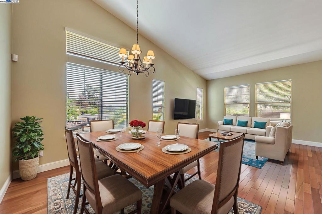 One of the best home values in all of Castro Valley. Welcome to this beautiful home at the top of the West hills in Castro Valley. Located in a very quiet neighborhood and close to Lake Chabot Park. This home has a large open floor plan with many upgrades and features that you will love. New Kitchen Aid double convection oven. New Bosch Benchmark Smart dishwasher. Viking Professional gas range (6 ranges) granite counter tops. Brazilian cherry floors. Solar panels are fully owned. New redwood deck railing and reinforced stairs and landing. Beautifully landscaped with artificial turf and massive pergola and deck covered with a remote controlled electric awning. The garage is finished with an EV charger. There is a ‘utility room’ under the house for many uses. 5 water storage tanks for garden use.
