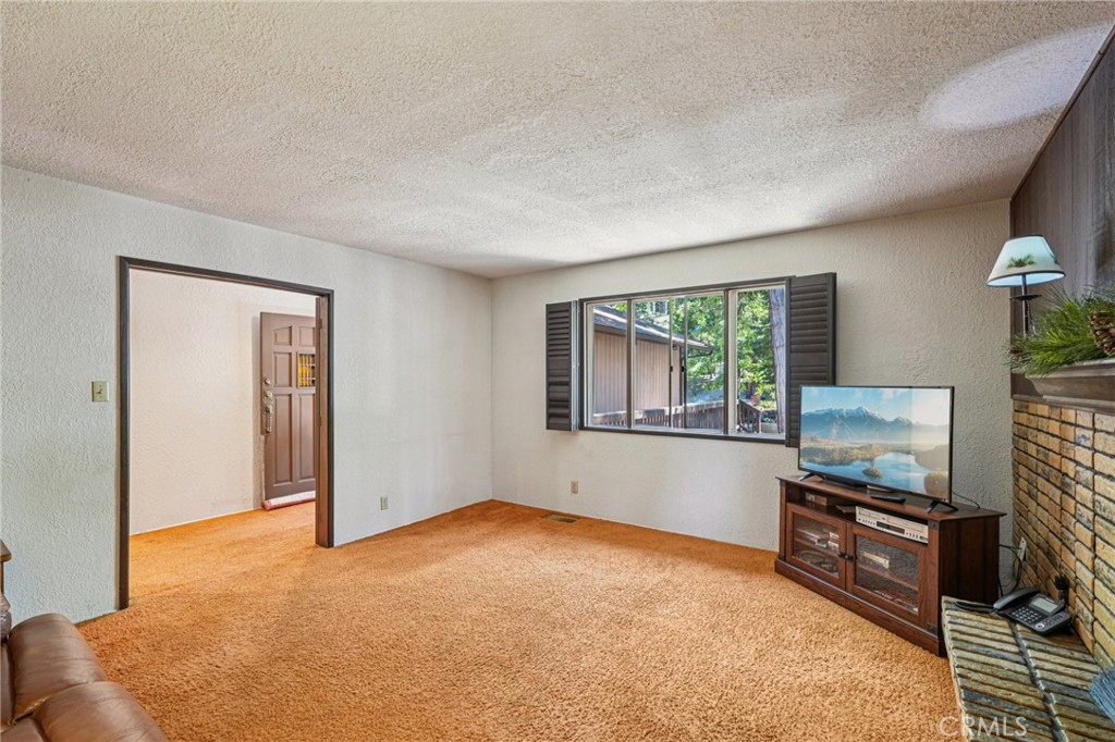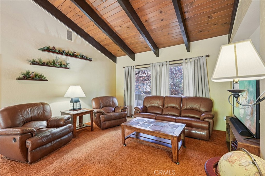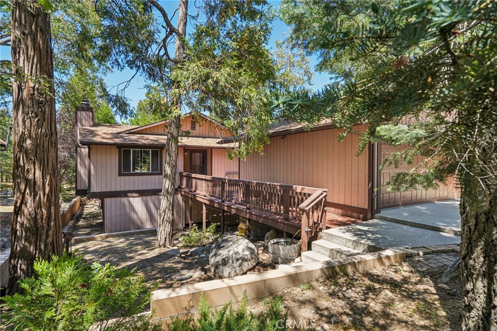 With level entry and a detached two-car garage that includes a storage room beneath it, this versatile property offers a rare combination of usable space, flexible potential, and a scenic setting. A breezeway leads to the main residence, a single-level 2 bedroom, 2.5 bathroom home featuring a formal living room with a raised hearth fireplace and a spacious great room with vaulted ceilings and walls of windows that bring in natural light and open to an expansive deck. The great room flows seamlessly into the open kitchen, which offers extensive counter space, abundant cabinetry, and a laundry area just off to the side. The primary suite includes its own private deck with forest views, a walk-in closet, and an en-suite 3/4 bath, while the second bedroom is adjacent to a full hall bath. Below the main level lies approximately 1,600 square feet of partially framed but unfinished space with a layout that could support a future extension of the main home or a separate lock-off unit with its own attached garage. Situated on a street-to-street lot with a flat backyard, mature conifers, and a sprawling walnut tree, the property offers privacy, space, and opportunity—all just steps from the national forest.