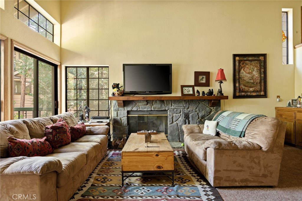 Arrowhead Lake Estates Condo with Lake Rights! Corner End unit with treehouse views from main floor living room and kitchen. Walk in to be greeted by vaulted ceilings and forest views. For outdoor enthusiasts enjoy the deck outside connected to both the kitchen and the living room. Up the stairs are two bedrooms, a bathroom, and the spacious primary suite with a bathroom, closet, and jacuzzi bathtub. Located minutes from so much fun in Lake Arrowhead from beach clubs to the Lake Arrowhead Village. Full of warmth and nostalgia, don’t pass up this opportunity to own your own mountain hideaway. Frigidaire appliances and Furnisher per sellers inventory.