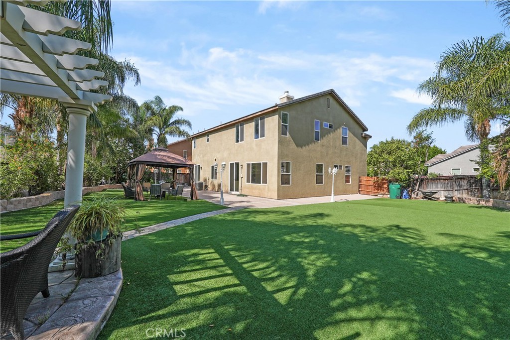 This stunning home offers the perfect blend of comfort, space, and curb appeal. The front yard features low-maintenance artificial turf, giving it a clean and modern look year-round. Step into the spacious backyard, a true outdoor retreat with lush turf surrounded by mature palm trees, creating a private, resort-like atmosphere that’s ideal for entertaining or relaxing. Inside, you’ll find a well-designed floor plan that includes four bedrooms, two of which have their own private bathrooms, perfect for added comfort and privacy. The home also features a bedroom on the main floor, ideal for guests, multi-generational living, or a home office setup. Additional highlights include RV access, giving you plenty of space for your recreational vehicles or extra parking. Located in a desirable Moreno Valley neighborhood, this home combines functionality, style, and beautiful outdoor living ready for its next owner to enjoy.