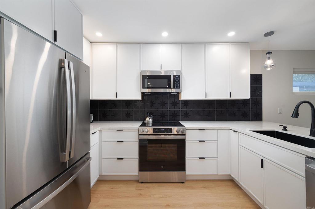 Fully reimagined from top to bottom, this North Park gem offers a thoughtfully upgraded living experience. The light-filled floor plan flows seamlessly from the modern kitchen into the living and dining areas. The redesigned lower level adds a third bedroom with its own ensuite bath and direct patio access. All three bathrooms are artfully finished with custom shower surrounds. The attached garage goes beyond storage, offering a full laundry setup complete with a sink and built-in cabinet and countertop. Owned solar keeps utility costs low, while French drains, custom concrete, and gutters protect the property year-round. Set on a rare private canyon lot, the outdoor space offers a sense of tranquility that’s hard to find in the city. Located on a quiet street with minimal through traffic and ample parking, this home also delivers unbeatable walkability—just steps to Morley Field’s tennis courts, disc golf, and trails, and less than half a mile to the vibrant cafes, breweries, and restaurants along 30th Street. Balboa Park is just minutes away. Turnkey, stylish, and perfectly positioned—this is North Park living at its finest. This property is turnkey and exactly where you want to be.