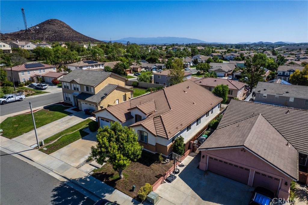 What is Homeowners Association (HOA), because there is none in this neighborhood; NO HOA! The moment you enter, you are welcomed by vaulted ceilings and an abundance of natural light that flows over porcelain tile flooring. The open-concept design centers around the kitchen and great room, the perfect heart for the home. The kitchen is arranged with a center island that has granite, beautiful cabinetry, including a gas range, microwave, dishwasher, and sink. Plus, enjoy peace of mind with a brand new AC unit installed this year. Relax or host in the spacious living room, featuring custom shelves for the living room next to seamless access to the well-manicured, low-maintenance backyard. Outside two small citrus trees and a ‘Tuff’ shed for storage, followed by two already pruned trees greet you. A dedicated sanctuary, the Primary Suite offers direct backyard access and a spa-like bath with a jacuzzi tub, separate shower, and dual vanities. It is completed by two separate walk-in closets; rest assured, the most serious business is conducted behind the Primary Suite’s private toilet door, ensuring a true moment of solitude. Two bedrooms share a convenient dual sinks in the full bathroom, while the third bedroom features its own dedicated ensuite bathroom. Finally Practicality: A spacious laundry room can double as a well-appointed mudroom with ample storage between the garage and living space. We can’t forget the indoor-outdoor California Lifestyle, extend your living space with the relaxing back patio, a serene covered sitting area that overlooks the easy-to-manage, low-maintenance backyard. From outside and in the pictures you will see the condition of this wonderful tile roof giving you peace of mind. Location: Centrally located for ultimate convenience! Enjoy quick access to groceries, chill dining, schools, and 215 Freeway.