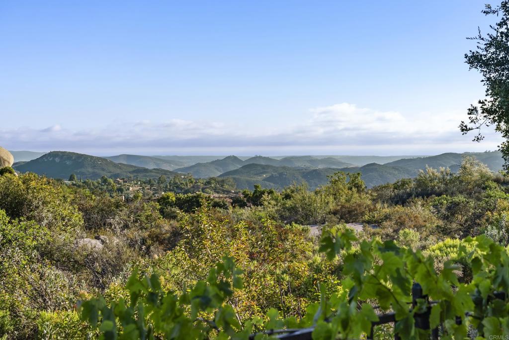 Welcome to 28889 Anderson Court, an enchanting Spanish Mission-inspired residence perfectly sited on 2.14 acres for the ultimate in privacy. From the moment you arrive via the long, private driveway and porte-cochère, you’ll feel a sense of tranquility surrounded by lush landscaping, mature specimen palms, and postcard-perfect vistas. Soaring views to the south and west create an incredible light orientation and a front-row seat to nature’s beauty—complete with abundant wildlife and magical ocean and sunset views. The elevated setting, perched at 1750 feet above sea level, offers a unique microclimate, ideal for vibrant landscaping and future expansion opportunities. Inside, the home spans four bedrooms, including a spacious primary suite with panoramic views and a generous closet. Designed with flexibility in mind, the property easily lives as a three-bedroom main home plus an attached 1000sf guest suite—perfect for multi-generational living, hosting guests or as a partitioned rental unit or home office. The suite features its own private entrance, bedroom, bathroom, office and laundry hookups, plus pre-installed 220 electric and plumbing for a stove, fridge, sink, chandelier and space for a breakfast lounge. The main level boasts a grand living room with vaulted ceilings and a cozy fireplace, an oversized dining room that opens to views of the pool and gardens, and a well-appointed kitchen flowing seamlessly into a generous family room with direct access to a spacious, covered outdoor loggia. Step outside and discover an entertainer’s paradise: a sparkling pool and spa, expansive sun patios, lush lawns for play, and a private viewing pavilion overlooking the grounds. Beyond the landscaped area, an unfenced portion of the lot offers exciting possibilities to add a tennis or pickleball court, vineyard, additional guest house, or private garden retreat. Additional features include an oversized three-car tandem garage with abundant storage, room to create a wine cellar, and timeless handcrafted stone exterior walls reminiscent of historic California missions. This exceptional property is located within Rimrock Estates, an exclusive, guard-gated community celebrated for its privacy, security, and breathtaking views. Known as one of the most desirable enclaves in North San Diego County, Rimrock Estates offers a serene retreat from city life while remaining just minutes from shopping, dining, and freeway access. The community is defined by its elevated lots with sweeping mountain and coastal vistas, stunning custom homes on large private parcels, and proximity to golf, equestrian facilities, wineries, and great schools. Combining luxury living with a strong connection to nature, Rimrock Estates delivers an idyllic setting for those who value privacy and beauty. This property is far more than just a home—it’s a sanctuary. Experience the perfect blend of classic architecture, peaceful living, and endless opportunity at 28889 Anderson Court.