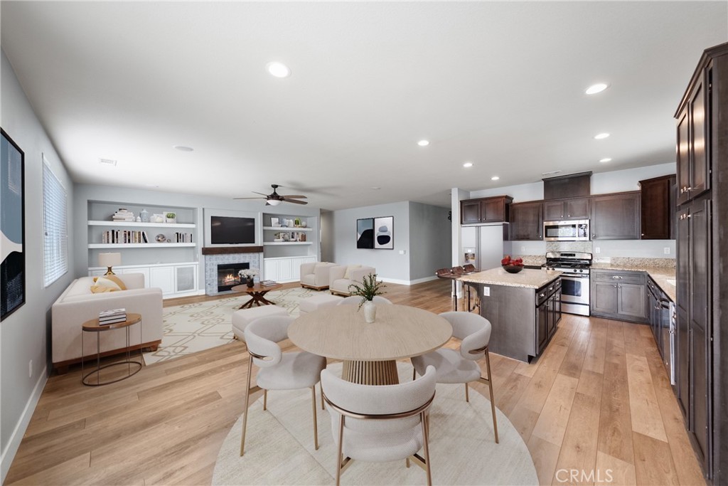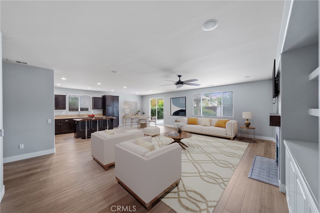 Stunning single-story home in the highly desirable Heritage Lake community that truly shows like a model. From the moment you step inside, you’ll notice the open, inviting floor plan and the pride of ownership throughout. This home features a living room off the entrance, 4 spacious bedrooms and 2 full bathrooms, with thoughtful design details that make everyday living both functional and enjoyable. The open kitchen is a chef’s delight, boasting granite counters, upgraded cabinetry, a large center island, and plenty of counter and storage space. It flows seamlessly into the majestic family room, where a cozy fireplace and built-in entertainment cabinets create the perfect spot for relaxing or hosting family movie nights. Outside, the professionally landscaped front and backyard are designed for low maintenance while still offering plenty of beauty. A covered patio makes the backyard an inviting space for BBQs, dining al fresco, or simply enjoying the peaceful setting. The large 3-car tandem garage provides extra space for vehicles, storage, or a workshop. And living in Heritage Lake means you’ll have access to incredible amenities including a scenic lake, clubhouse, pool, and neighborhood parks—all just steps away. Beyond the community, you’ll love the convenience of nearby schools, shopping, and easy freeway access, making commuting a breeze while still enjoying the quiet and charm of Menifee living. This isn’t just a home—it’s a lifestyle, blending modern upgrades with community amenities in one of Menifee’s most sought-after neighborhoods.