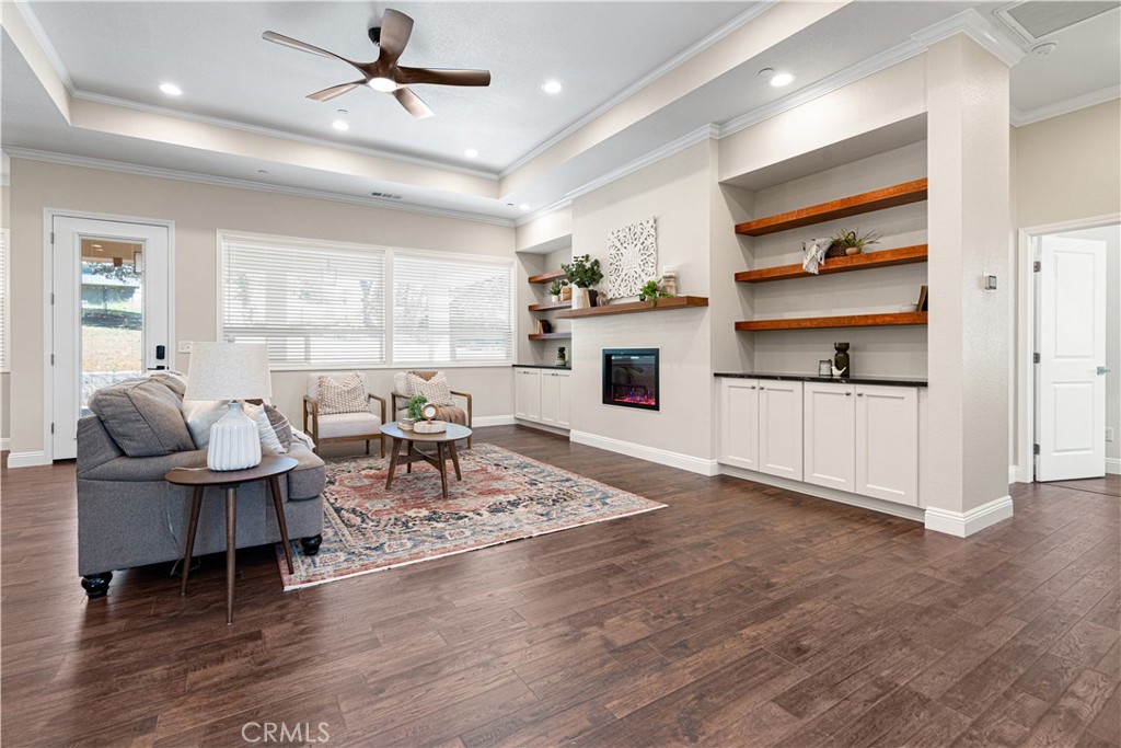 Exquisitely crafted with exceptional attention to detail, this stunning home spares no expense when it comes to custom features and thoughtful design. From the moment you step through the front door, you’ll be captivated by its inviting charm and modern sophistication. A true showstopper, the home welcomes you with warm, wide-plank vinyl flooring, an abundance of natural light streaming through numerous windows, and a sought-after open-concept layout perfect for both everyday living and entertaining. The spacious living room boasts built-in shelving and a striking fireplace that serves as the centerpiece of the space. The gourmet kitchen is a chef’s dream, complete with sleek white cabinetry, luxurious quartz countertops, Monogram and Cafe appliances, a walk-in pantry, and a professional-grade 6-burner gas range. A generously sized center island features a farmhouse-style sink and a cozy breakfast bar—ideal for quick bites or casual conversation. Just off the main living area, you’ll find a versatile bonus space that can easily be transformed into a home office, reading nook, or play area. When it’s time to unwind, retreat to the expansive primary suite offering plenty of room to relax and recharge. The spa-inspired en suite bathroom features dual vanities, elegant marble tile flooring, an oversized walk-in tiled shower, and a massive walk-in closet to accommodate your entire wardrobe with ease. Additional highlights include owned solar panels for energy savings, insulated interior walls for added sound privacy, recessed lighting, wi-fi smart ceiling fans throughout, a dedicated indoor laundry room, two well-appointed guest bedrooms, and an attached two-car garage. Nestled on over an acre of land at the end of a quiet, private road, the outdoor possibilities are endless—host summer barbecues under the covered patio, enjoy the open lawn for games and gatherings, or take advantage of the extra space by adding a pool, workshop, or garden. Despite the peaceful, secluded setting, you’re just a five-minute drive to Oroville Hospital, offering convenience without sacrificing tranquility. This newer home truly has it all—luxury, comfort, energy efficiency, and room to grow. Don’t miss your chance to make it yours—this rare gem won’t last long!