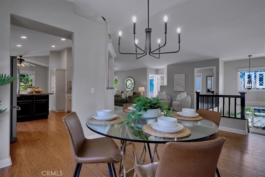 Welcome home to this beautiful 4-bedroom, 3.5-bath Sundance model pool home located in the highly desirable Wagon Wheel community. Designed with family living in mind, this thoughtfully appointed floor plan offers plenty of space for everyone to be together while also providing private retreats when needed. Downstairs, you’ll find three bedrooms: one with its own ensuite, another with a large and versatile private retreat, and a third perfect for guests. Upstairs, the spacious primary suite with its relaxing ensuite bath creates a private sanctuary to unwind at the end of the day. The main living area is filled with natural light and features an open-concept design that brings the whole family together. From casual weeknight dinners to holiday celebrations, the seamless flow between the kitchen, dining, and family room makes every gathering warm and inviting. The home showcases beautiful upgrades throughout, including granite counters, decorative beveled glass windows, elegant wood shutters, custom wood door casings, wood flooring, and brand-new carpet. Step outside to your backyard oasis, where a sparkling pool and spa set the stage for endless fun and relaxation. It’s the perfect place to entertain, host summer barbecues, or simply make lasting memories with family and friends. Adding to its appeal, this home is energy-efficient with brand-new Tesla solar panels, helping to reduce utility costs while supporting sustainable living. Nestled in the charming Wagon Wheel community, this home offers access to parks, trails, and top-rated Capistrano Unified schools, including Wagon Wheel Elementary, Las Flores Middle School, and Tesoro High School—all recognized as Blue Ribbon schools. More than just a house, this is the perfect family home in one of the area’s most sought-after neighborhoods.
