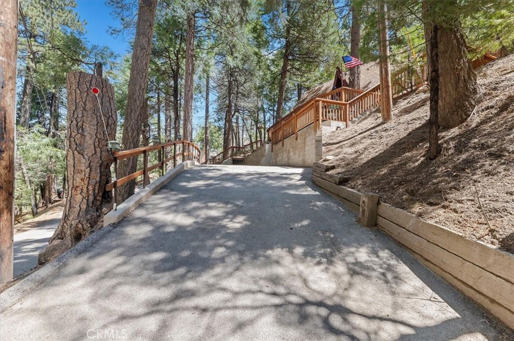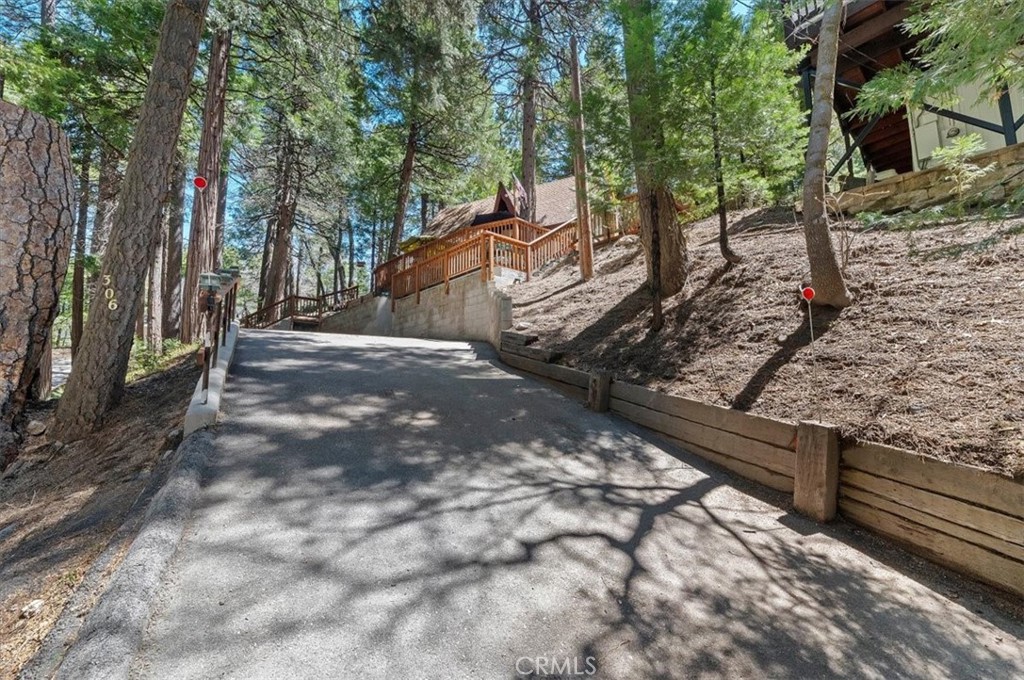 Nestled among the towering pines of Lake Arrowhead, 306 Dolly Varden Drive offers a serene mountain retreat with year-round appeal. This spacious 3-bedroom, 2-bathroom home features a versatile layout, including a main-level bedroom and bath—ideal for guests or multigenerational living—and two generously sized upstairs bedrooms with full-height ceilings. The open-concept living area boasts a cozy fireplace and seamlessly connects to the dining space and kitchen, creating a warm and inviting atmosphere. Set on a tranquil, tree-lined street, this home provides the perfect balance of seclusion and convenience. Enjoy easy access to Lake Arrowhead Village, where you’ll find charming shops, dining options, and seasonal events. Outdoor enthusiasts will appreciate nearby attractions like SkyPark at Santa’s Village, offering mountain biking, hiking, and ziplining adventures year-round. Ideal location off the main roads but still close to the lake. Nearly $100,000 spent on critical upgrades including but not limited to updated electrical panel, new windows and doors, new hardscape, new retaining wall, new driveway, new decking and rails, and room for 4+ cars with easy off street parking. Multiple flat outdoor areas ideal for year-round entertaining.