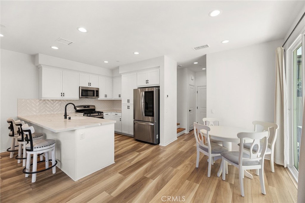 Welcome to your new home at Rancho Soleo – Temecula’s newest condominium community. At 1,523 square feet this 3 bedroom, 2 1/2 bath, 2-story townhome is in pristine condition having been lightly occupied since its purchase by the original owner in 2021. This coveted Cerro model with dedicated entry, kitchen, living and dining areas includes marble textured quartz countertops and a generous kitchen island. Developer upgraded wood styled vinyl flooring both upstairs and downstairs, recessed lighting throughout and custom tile bathroom flooring add an elegant, designer touch! Upstairs the primary bedroom features an ensuite balcony, luxurious bathroom with barndoor style entry and a generous walk-in closet. The dedicated laundry room is conveniently located upstairs with premium Samsung washer and dryer are included. Outside the wrap-around patio is great for fresco dining, Two car attached garage, energy efficient tankless water heater, solar lease and smart home features. Conveniently located between Pechanga Parkway and Friendship Park’s tennis courts, soccer field and recreation area. Community amenities include pool, jacuzzi, stunning clubhouse, BBQs and ample guest parking with walking paths throughout. Near Great Oak High School, Old Town Temecula and wine country. Come and view this exceptional opportunity and value!