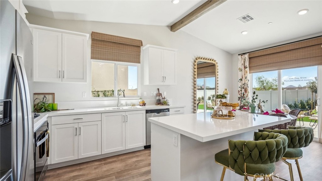 NEW CONSTRUCTION and QUICK MOVE-IN in Winchester – SOLAR INCLUDED and NO HOA!! – This 1,576-square foot single-story home with California Spanish façade and a LARGE BACK YARD space has 3 bedrooms and 2 full bathrooms. The Island kitchen with island eating area has Bianco Tiza QUARTZ counters, built-in stainless-steel appliances and a pantry closet. The interior comes complete with Crisp White shaker-style cabinetry throughout, lots of included recessed lighting, and upgraded flooring with plush carpet in bedrooms, closets, and stairs, and vinyl in main living areas. The primary bedroom has an ensuite bathroom with double sinks and a walk-in closet, and there are 2 additional bedrooms, a full bathroom, and laundry room. There is also a direct-access 2-car garage PRE-PLUMBED for an electric car! This truly modern home has all the Smart Home features you would expect and is LANDSCAPED and IRRIGATED in the front yard. The Juniper community is situated close to park and freeway access. We anticipate an December move-in and we can’t wait to welcome you Home!! * HUGE SAVINGS!! Our Solar is “No Additional Cost to Your Buyer” it Included in the Price of the Home * * Large Rear Yard *