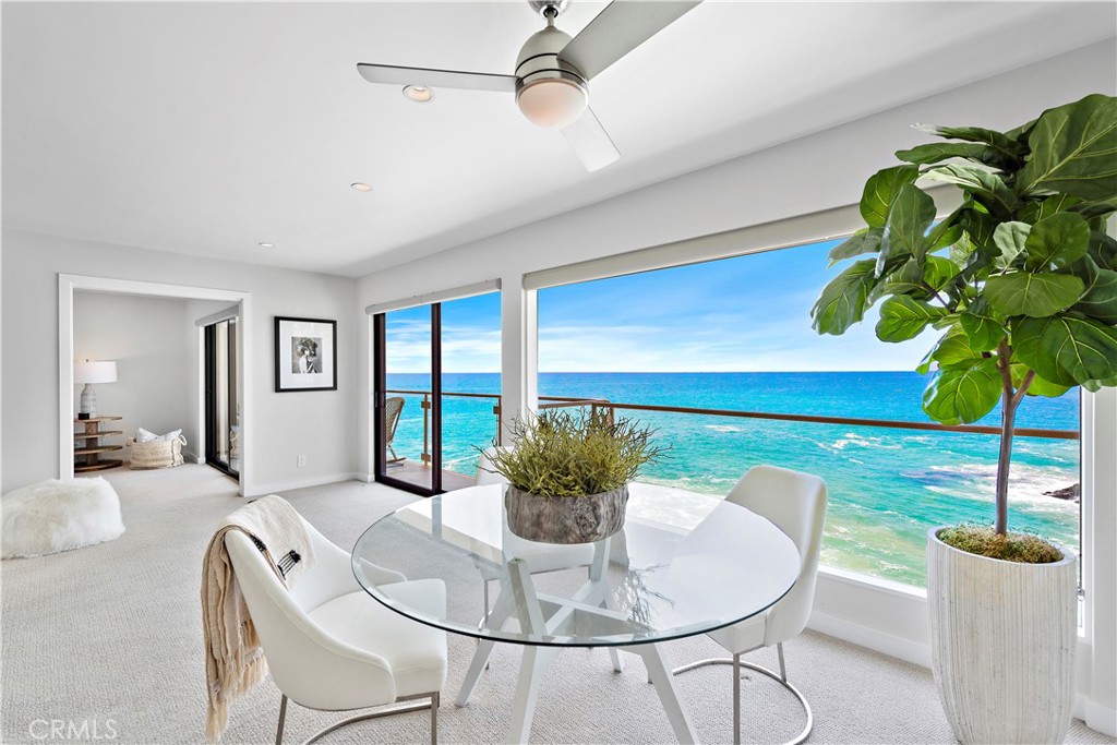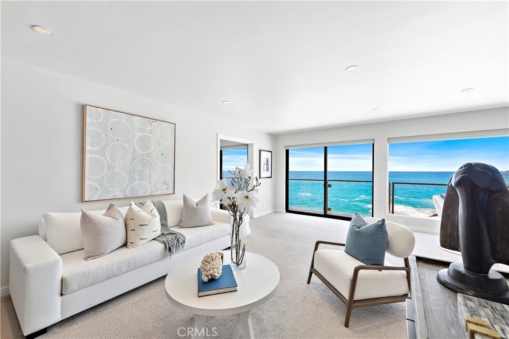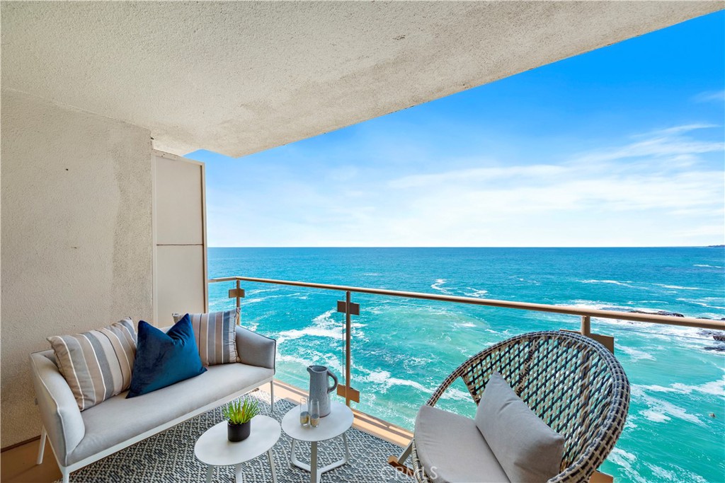 This spectacular FURNISHED remodeled North/ West facing unit offers mesmerizing views of Catalina Island, year round sunsets, north coast white water and city light views to Palos Verdes. The jaw-dropping views of crashing waves and white sandy beaches below are simply the best views . Experience true resort living in this breathtaking oceanfront condo nestled within the exclusive Table Rock community in South Laguna! From the moment you enter the front door, you will be mesmerized by panoramic whitewater, beach, and coastal views all the way down the coast. This very light and bright unit has been remodeled and is ready for move in! The great room opens up to dining , kitchen, living and an oceanfront deck. The master suite is spacious and has access to oceanfront deck. Private stairs lead to West Street Beach; walk on the the sand to the famous Montage Resort. Association includes laundry facility, fitness room, pool room, recreation room, barbeque area, pool and spa. Beautiful grounds surround the complex. A/C !!! Walk to restaurants and shops!
