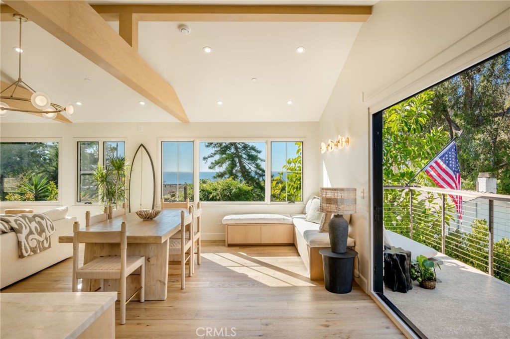 Completely remodeled & incredibly private pool property with an ADU in the heart of South Laguna. Sited above Thousand Steps beach, this architectural wonder was reimagined to blend elegant interiors with incredible entertaining spaces in total seclusion. Sweeping views serve as the quintessential Southern California backdrop for the main room accented with wooden beams, which encompasses a spacious living area, a dining section with built in seating, and the home’s kitchen with premium finishes. Two bedrooms and a multipurpose den can also be found on this floor, offering the essence of single level living. The primary suite is luxurious, with bespoke oak cabinetry, a bright bathroom with a marble-enclosed walk-in shower with a sky light, double sinks, and a standalone bath tub. Multiple outdoor seating and entertaining area can be found throughout this fully gated property, including a BBQ next to the saltwater pool and spa. The lower level’s ADU includes a secondary kitchen, full bath, and a studio living-sleeping set up, making it fully autonomous. Minutes away from the area’s most sought after beaches and local restaurants, this is a offering for those seeking a truly discerning coastal lifestyle.