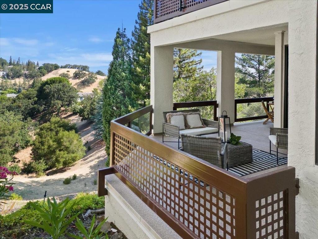 PRICE REDUCED!!! This end unit Villa Verde model is located in the highly-sought after, “The Heights”. Panoramic hillside views from every window of this 2 Bedroom, 2 Bath + Loft/Den floor plan. Wood floors flow throughout, while the formal living room with wood burning fireplace and separate dining room, both have direct access to the covered veranda & deck. The updated kitchen features SS appliances and tons of cabinetry storage + pantry closet and the bright, breakfast room sits adjacent. Two bedrooms, including a primary suite boasting a private covered terrace, bathroom & walk-in closet w/custom closet organization. The sun-filled loft includes 2 skylights and a mini split HVAC – makes a great office, craft room or guest quarters! Dual pane windows, owned solar, and interior access to the garage plus detached car port.