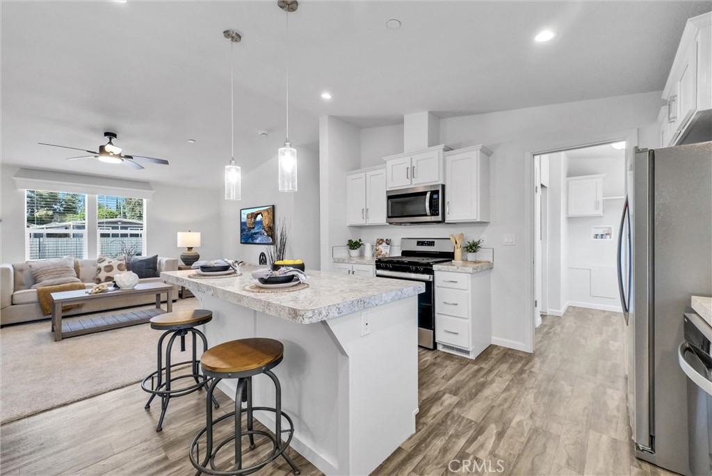3 Bedroom, 2 Bath 1335 SF NEVER LIVED IN/New Manufactured Home on PERMENANT FOUNDATION (433A CERT). Kitchen with all new stainless appliances, large kitchen island with breakfast counter opens to formal dining area and living room. Great room concept perfect for family. Private ensuite primary bedroom with large private bath that has a walk in linen closet. Full bath in hall with shower in tub. Huge/High 3 car garage 20 x 40 (est 800 sf) plus a big work area; RV Parking with pull through lot from Richard Ln to Danny Ln with front gate and back gate access. Custom blinds throughout. Indoor laundry room. Concrete driveway. Vinyl fence in front. Fully fenced in lot for privacy. 3-ton air conditioning unit. Freeway close, shopping nearby. County is working with Danny Lane owners: Planned asphalt street (similar to Richard Lane, behind garage).
