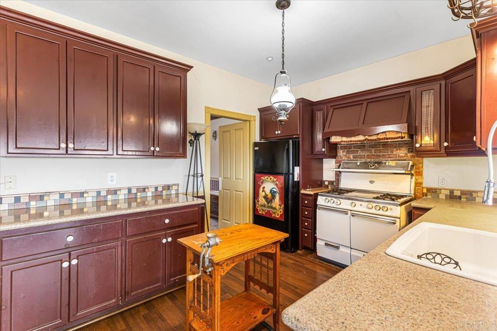 Perched above the valley on 2.27 acres of gently sloping land, this timeless Victorian-inspired residence offers a rare blend of architectural grace and rural serenity. With over 3,100 square feet of beautifully detailed living space, this peaceful country escape invites you to enjoy sweeping sunset views, modern comforts, and the freedom to raise animals or create your dream garden retreat. Step inside to discover soaring ceilings, vintage-style fixtures, and an inviting floor plan that balances warmth with grandeur. The main level features a sun-drenched den, a formal dining room framed by large windows, and a well-appointed kitchen with custom cabinetry and a nod to the home’s vintage character. The generous downstairs bedroom offers flexibility for guests or multi-generational living. Upstairs, the spacious primary suite serves as a private sanctuary—complete with panoramic views, plush carpeting, and an original clawfoot tub in the en suite bath. Two additional bedrooms provide peaceful spaces for rest or creativity. Step outside to soak in breathtaking sunset views from the balcony or entertain on the wraparound porch. The backyard features a garden-ready area, stone retaining walls, and ample space for animals and livestock—all set against a backdrop of open skies and rolling hills. Modern upgrades include central air conditioning, a fire sprinkler system, reinforced foundation for earthquake safety, and an HVAC system for year-round comfort. Located just minutes from downtown Ramona and Mountain Valley Ranch, this exceptional property combines Victorian charm with the relaxed lifestyle of San Diego’s countryside.