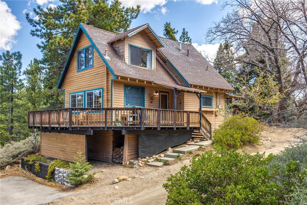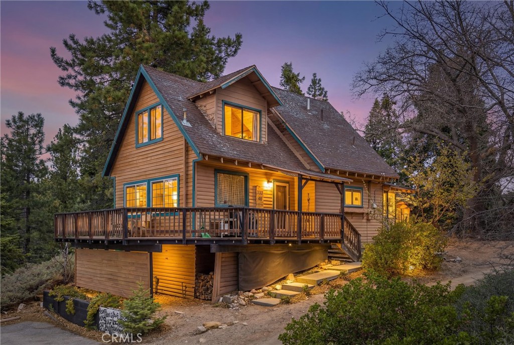 Charming, Mid-Century gem in the heart of Green Valley Lake only a few minutes walk down to the lakefront. Meticulously designed and curated as a magical escape with friends and loved ones. Entering the front door, a bright living room greets you with a warming wood stove fireplace and dramatic emerald tile wall to frame it. Dark umber LIFEPROOF vinyl flooring throughout is easy to maintain yet keep it visually rustic. To the right of the entry, the vintage cabinets have been painted hunter green to bring in the colors of the woods and are stylishly elevated by a low-maintenance marble print laminate countertop. Gather around a table in the dining area with windows overlooking the tranquil Green Valley Lake mountainside. Towards the back, a laundry room and storage hideaway. The bathroom has been recently updated with classic touches and black finish fixtures. The steps leading to the upper levels is cleverly illuminated with a fuchsia neon sign that is simply “divine.” Two bedroom areas are on the second level with battered walls painted white to brighten the space with a clean aesthetic and provide the perfect backdrop for cozy lounging or restful nights. The attic has been transformed into a peaceful retreat ideal for napping on a winter day or reading a good book in warmer weather. The attic window overlooks the spacious deck below providing an ideal outdoor space for sunsets and summer barbeques. Call this enchanting cabin your new home or keep it as a delightful income property. All furnishings and decor can be made available for those interested. Update: new southside siding and exterior paint