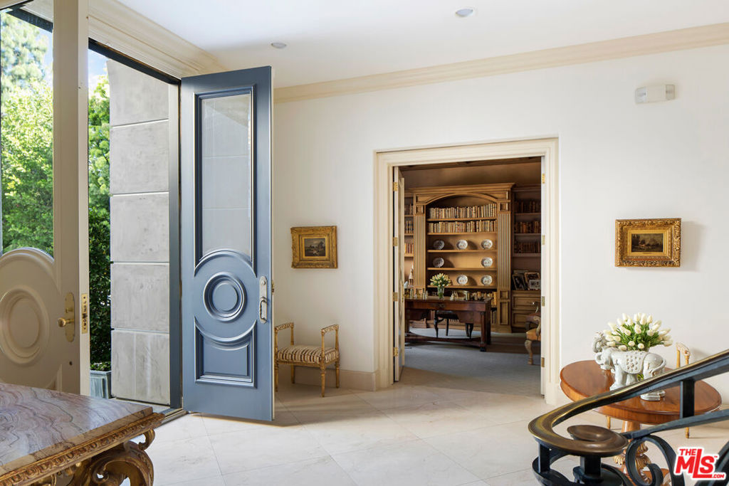 Fully Furnished French Chateau Estate. A spectacular residence set on over a half-acre, boasting the most coveted views in Mulholland Estates, a prestigious 24-hour guard-gated community. Behind grand iron gates, step into refined luxury with a dramatic two-story foyer and sweeping spiral staircase. The home showcases a formal living room with herringbone wood floors, a wood-paneled library, family/media room, formal dining room, and a gourmet kitchen with marble backsplash, Viking appliances, and water filtration system all overlooking manicured grounds, a tranquil fountain, and breathtaking views. The grand primary suite features a step-down sitting area with a double-sided fireplace, a custom marble bath with deep soaking tub, and a spa-like sauna. The private backyard is an entertainer’s paradise with a sparkling pool, spa, multiple lounge areas, and a built-in BBQ. Available for lease fully furnished, offering a turnkey lifestyle in one of the most exclusive communities in Los Angeles.