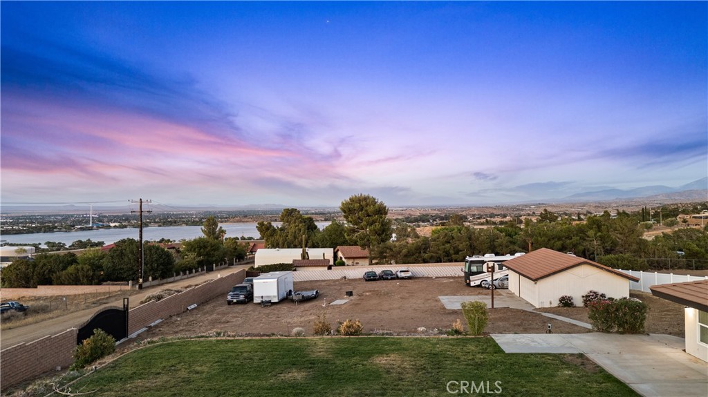 Welcome to a rare gem in the highly sought-after Ana Verde Hills of Palmdale. Set on over an acre of flat, usable land, this beautifully remodeled single-story offers nearly 4,300 sq. ft. of living space with breathtaking views of Palmdale Lake, sparkling city lights, and the surrounding mountains. Originally built in 1963 and thoughtfully updated in 2007, this home blends timeless character with modern upgrades. Inside, you’ll find 5 bedrooms (or 4 plus a dedicated workout room), 3 bathrooms, and a bright open-concept layout designed for both relaxation and entertaining. The gourmet kitchen features generous counter space and flows seamlessly into a grand living room anchored by a striking rock fireplace. Retreat to the spacious master suite, complete with a spa-inspired bath and private garden access. One of the bedrooms even boasts its own patio entrance—perfect for guests or a quiet home office. Outdoors, you’ll enjoy abundant parking for RVs, boats, and extra vehicles, along with an oversized 3-car detached garage, a 2-car carport, and space for all your toys. With all-electric utilities, city water, and close proximity to the 14 Freeway, this property offers both convenience and tranquility. Don’t miss the chance to own this updated, view-filled sanctuary in one of Palmdale’s most peaceful and prestigious neighborhoods.