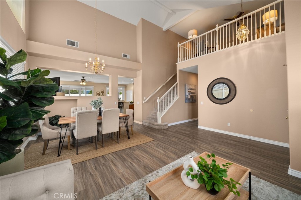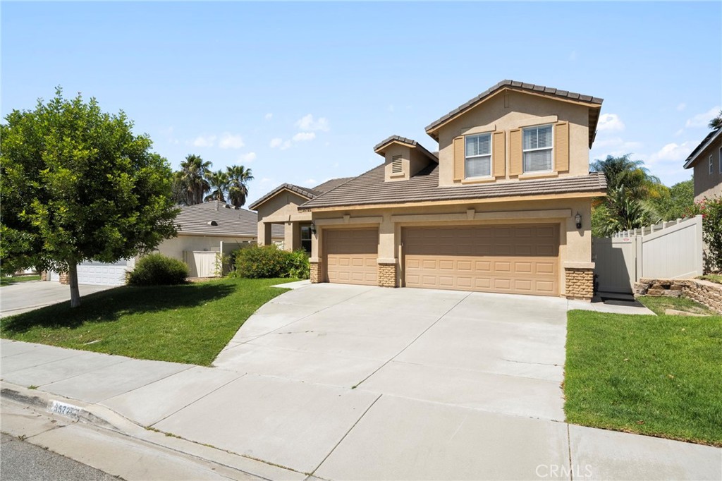 Welcome to your turnkey dream home nestled in the highly desirable Carmel Hills community of Wildomar. This beautifully maintained residence offers an inviting entry with soaring cathedral ceilings and an abundance of natural light. The kitchen has been tastefully remodeled with stainless steel appliances, recessed lighting, and a spacious center island—perfect for hosting friends and family. With four generously sized bedrooms, this home is designed for comfort and functionality. The primary suite is conveniently located on the first floor and features a private bathroom, walk-in closet, cozy sitting area, and direct access to the low-maintenance backyard. An additional downstairs bedroom sits near a remodeled full bathroom, ideal for guests or multi-generational living. The laundry room is also conveniently located on the main floor near the primary suite. Upstairs, you’ll find two more bedrooms, a third full bathroom, and a large loft that can be used as a second living area, home office, or entertainment space. The home also includes a spacious three-car garage, a recently installed $25,000 HVAC system, a durable tile roof, and a newer vinyl fence enclosing the property. Step outside to enjoy a covered patio and a turf backyard with no neighbors behind and room to expand for even more outdoor space. A newer Tuff Shed provides excellent storage. This is truly one of the most turnkey and well-priced homes in Carmel Hills—don’t miss your chance to call it yours!