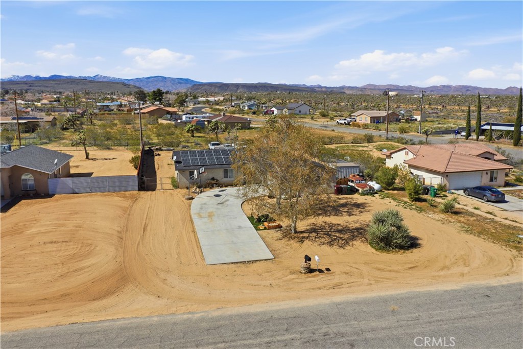 Single-story 3-bedroom, 2-bath home situated on a large 21,000+ sq ft lot in Yucca Valley. Offering approximately 1,207 sq ft of living space, this property features a functional floor plan with ample space for entertaining, attached 2-car garage, and a large well maintained yard. This home is equipped with solar panels, adding long-term energy savings. The expansive lot provides ample space for RV parking, storage, gardening, workshop potential, or future improvements. The rear yard is fully fenced, and front yard includes a mature shade tree and outdoor seating area. This Home presents a great opportunity for buyers looking to find their piece of heaven in a growing desert community. Conveniently located near shopping, dining, and Joshua tree national Park.