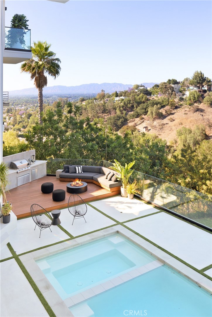 A one of a kind, warm and inviting custom Studio City hillside retreat offering the nearly impossible to find ‘Golden Trio’ in the hills: pool, views, and a usable yard. A heated pool and spa overlook sweeping canyon and city views, while the expansive grassy yard features multiple outdoor lounge and entertainment areas, a true rarity for a hillside property and an ideal setting for relaxing or entertaining. Fully remodeled down to the studs, no detail has been overlooked. The home features fully custom design details throughout and is offered fully furnished with thoughtfully selected designer pieces, creating a truly turnkey, effortless, move-in-ready lease. Inside, the home features European wood floors, designer lighting, Miele appliances, and a clean, modern aesthetic throughout. The main level offers an open layout with the kitchen, living, and dining areas flowing seamlessly together. The primary suite is a true retreat featuring a fireplace, custom built-ins, a custom oversized Tempur-Pedic adjustable bed with luxury linens, and a spa-like bath with steam shower. Two additional ensuite bedrooms offer a comfortable and private layout. Standout spaces include a fully equipped recording, streaming, or gaming studio hidden behind a secret door on the main level. This flexible space could also function as an additional bedroom, with a full bathroom conveniently located on the same level. Additional entertainment and lifestyle features include a private bar, convertible media or theater room, piano, and custom furnishings throughout. The lower level features a media room with bar that opens directly to the pool and outdoor BBQ area and lives like its own private space with a separate entrance, offering incredible flexibility for guests, extended living, or anyone who appreciates additional privacy within the home. Additional highlights include a gym with Tonal, a full smart home system with Control4 and integrated surround sound throughout, and an elevator servicing all three levels for added convenience and accessibility. Located just minutes from Erewhon, Equinox, Ventura Blvd dining and shopping, and close to highly rated schools, this home offers a rare blend of hillside privacy and everyday convenience while delivering a true California lifestyle experience.