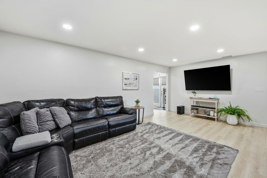 Stunning and exceptionally designed home, that has been beautifully remodeled and perfect in every way. This home has an amazing open floor plan with a gorgeous kitchen, with plenty of cabinets and great counter space. Gorgeous flooring flows throughout the home & the Primary bedroom has wall to wall closets and a fantastic new ensuite with contemporary tile in an oversized shower with full glass enclosure. The home has 4 perfectly sized guest rooms, 2 full guest baths that tastefully updated and are very spacious and an additional sitting area that can be used as a multi-generational space, office or second living space. Custom window shades, AC, fully finished oversized garage, recessed lighting, tons of storage and more are delivered on this home!