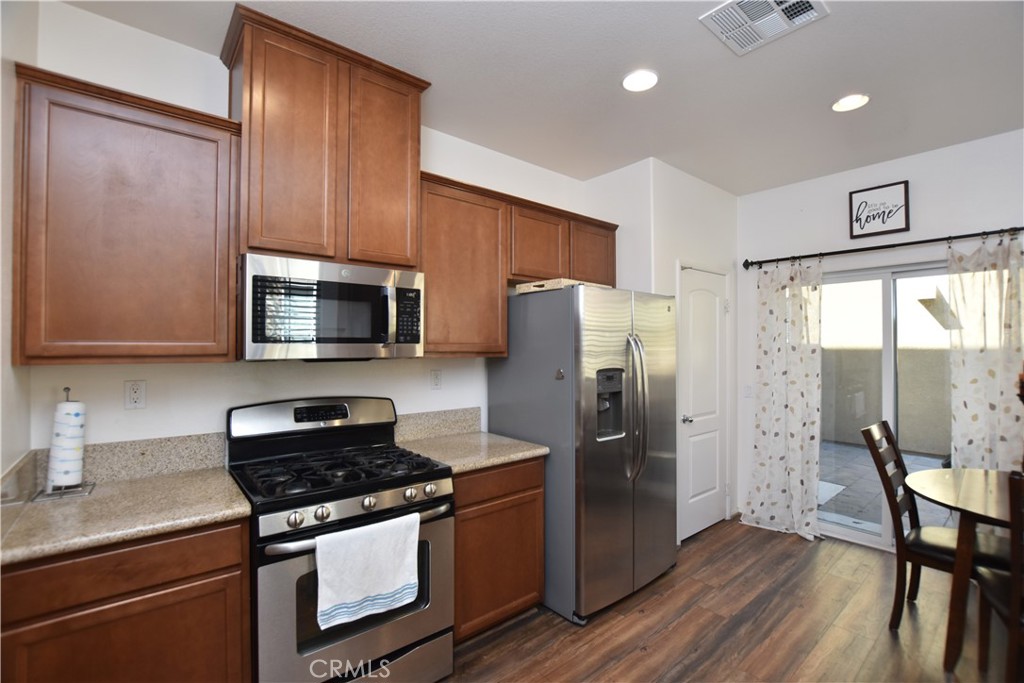 Hard to find well maintained, detached end unit positioned near the community park and pool with two en-suites bedrooms. This charming home in the Paseos at Crown Valley home has 1,363 square feet of well designed living space with 2-bedrooms and 2.5-bathrooms. There is upgraded laminate flooring throughout the first level and the eat-in kitchen features stainless steel appliances, granite countertops, and a pantry. The living/dining room has lots of windows and a fan and there is a guest bathroom off the entryway. Upstairs showcases a spacious primary suite with bathroom and walk-in closet, along with a secondary en-suite bedroom and a roomy laundry room. There are ceiling fans in every room for comfort and lower electric bills. The attached two-car garage, includes interior access to the home and a secondary door leading directly to a private brick patio. The well maintained community sports many amenities including a pool, spa, tennis courts, playground, and sports field. Conveniently located near parks, dog parks, schools, and commuter routes, this home offers a practical layout, modern finishes, and excellent value. Nearby is the Crown Valley park has basketball and tennis courts, a playground, and a baseball field along with a HOA fee. The home is also conveniently located close to the Murrieta Hot Springs, numerous Wineries and Wine Tasting venues, Lake Skinner and shopping and dining, highway 79 and the 15 freeway.