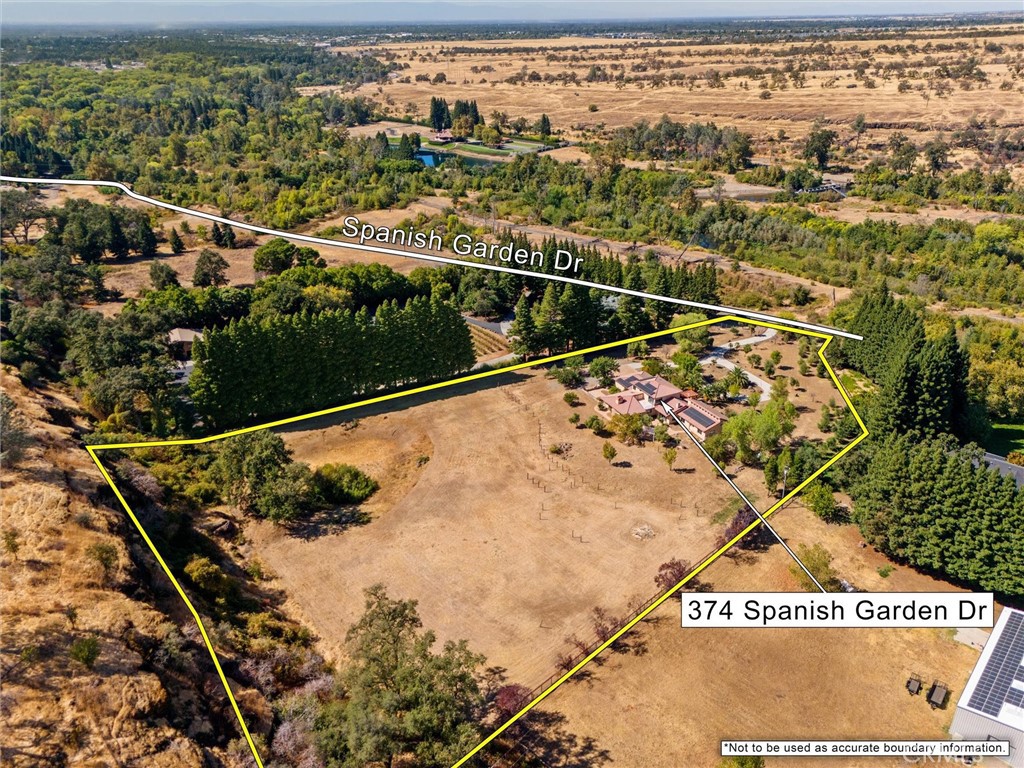 Nestled in the heart of Butte Creek Canyon, 374 Spanish Garden Drive offers a tranquil retreat surrounded by natural beauty. This expansive property provides spectacular views from nearly every window. This property features an array of fruit trees—including Santa Rosa plums, peaches, oranges, lemon and olive trees. Whether enjoying the peaceful sounds of nature or gazing at the breathtaking scenery, this home is the perfect escape from the demands of everyday life. This unique, energy efficient home boasts 7 bedrooms and 5 bathrooms, including an expansive upstairs primary suite and an additional upstairs bedroom. Five more bedrooms are located on the main floor, with two featuring en suite bathrooms. A dedicated home office, complete with built-ins, a desk, and a closet, ensures you have a private space to work or study. Freshly painted walls with an imperfect smooth texture complement tile flooring in the common areas and plush new carpet in the downstairs bedrooms and office. Transoms and skylights throughout bring in an abundance of natural light. Home features separate living and family rooms, a spacious formal dining room with built-in cabinetry, a breakfast nook, and a stunning kitchen with a massive island and eating bar. The chef’s kitchen is outfitted with double ovens, a Dacor gas (propane) range with six burners, a prep sink, a walk-in pantry, and a built-in pizza oven. Large laundry room offers ample storage, while a finished basement could be your dream wine cellar. The radiant floor heating system is managed by 14 Nest Learning Thermostats. Additionally, there is central air conditioning, and an Earth Cooling system, plus two wood-burning fireplaces (one with a gas option). Home is wired with Ethernet and coax cables for networking and surveillance capabilities, alongside a distributed Wi-Fi system. The property also features an attached 3-car garage, a large circular driveway with ample parking, and thoughtful plans for a future pool, complete with a pool house for storage and equipment. There’s even potential to restore a pond at the rear of the property. This home was meticulously crafted by esteemed local contractor Steve Ferreira using Insulated Concrete Form (ICF) construction for superior insulation and durability. With a tile roof and owned solar system comprising 52 panels, this home is as sustainable as it is stunning. Discover luxury, comfort, and sustainability in this extraordinary Chico residence!