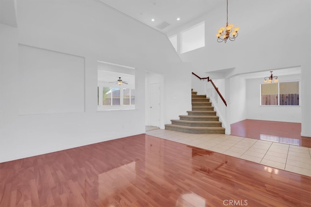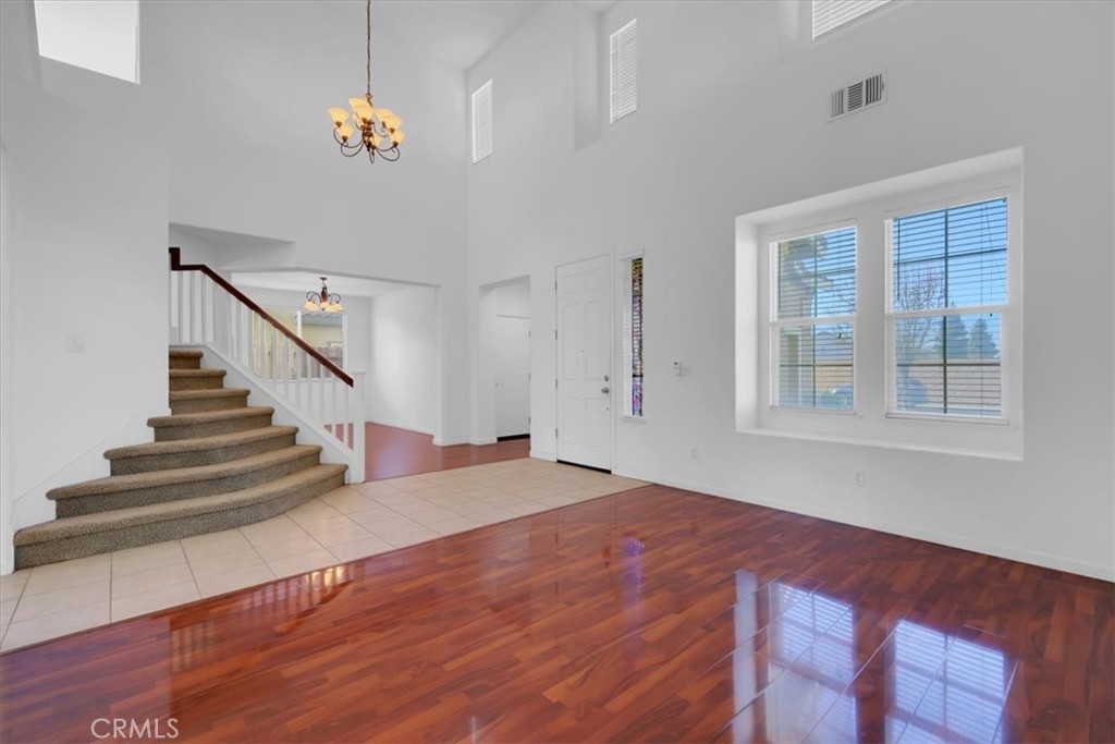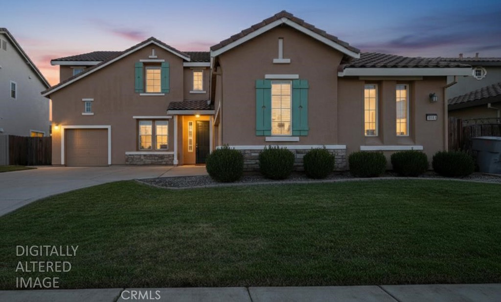 Beautifully maintained 4 bedroom, possible 5 bedrooms, 3 full-bath home featuring separate living and dining rooms with soaring cathedral ceilings and stunning high-gloss wood flooring. The cozy carpeted family room offers a welcoming fireplace, perfect for relaxing or entertaining. The kitchen is appointed with tile flooring, granite countertops, a gas cooktop, built-in microwave, and electric oven, along with a convenient dinette area. Additional highlights include a loft, indoor laundry room with both gas and electric hookups, and tile flooring in the kitchen, baths, and laundry room. Step outside to a landscaped backyard with a concrete patio, ideal for outdoor gatherings. The home features newer exterior paint and fencing, and the upstairs heater was replaced two years ago. Recently cleaned carpets add to the move-in-ready appeal. The seller is including the refrigerator and a newer LG top-loading washer and dryer with smart-phone capabilities. Parking and storage are abundant with a 2-car garage plus a separate 1-car garage, recently painted and perfect for use as a home gym, workshop, or man/lady cave. Don’t miss this amazing opportunity to own a spacious, well-appointed home designed for comfort and entertaining. Digitally Altered /staged – front of house with night view, Family Room and Master Bedroom.