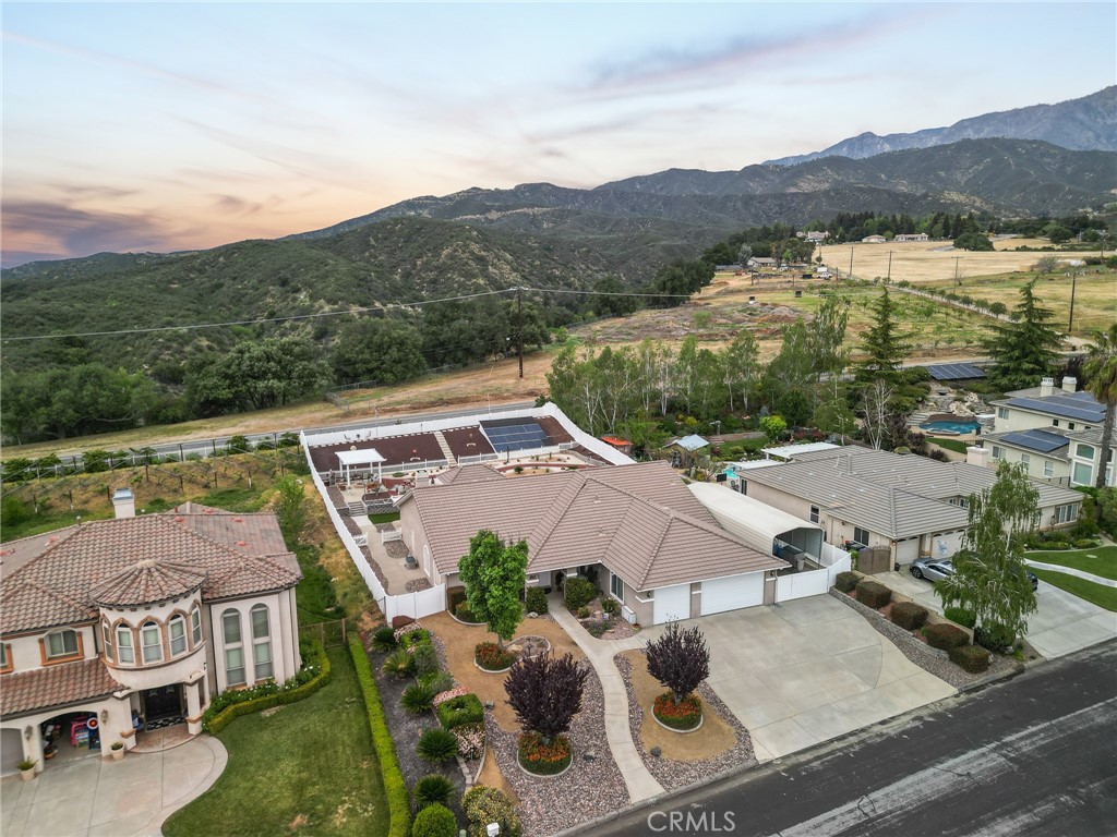 Experience upscale living in this beautifully maintained custom built single-story home! Located in one of Yucaipa’s most sought-after communities, just off Wildwood Canyon and minutes from Oak Glen. Offering a spacious and functional layout, the home features formal living and dining areas along with an open-concept family room with a wood burning fireplace, ideal for both everyday living and entertaining. Upgraded flooring runs throughout, including wood-like tile in the main areas and newly installed LVP flooring in the bathroom. The kitchen is thoughtfully designed with granite countertops, custom cabinetry, a large island, walk-in pantry, and double ovens. The primary suite offers a spacious retreat with dual sinks, soaking tub, walk-in closet, and ample storage. Additional bedrooms are well-sized, including a flexible office space with French doors and a convenient Jack-and-Jill setup. Step outside to a private, low-maintenance backyard with tiered hardscape, mountain views, covered patios, and a built-in BBQ area—perfect for entertaining. Additional highlights include PAID-OFF SOLAR, RV parking with dump station, a finished garage, and an insulated shed. Conveniently located near local wineries, and dining, this home offers a rare blend of privacy and seclusion while still being close to everyday amenities. It’s ideal for those who appreciate nature, scenic mountain views, and a more peaceful lifestyle. Schedule a tour today to experience everything this home has to offer!