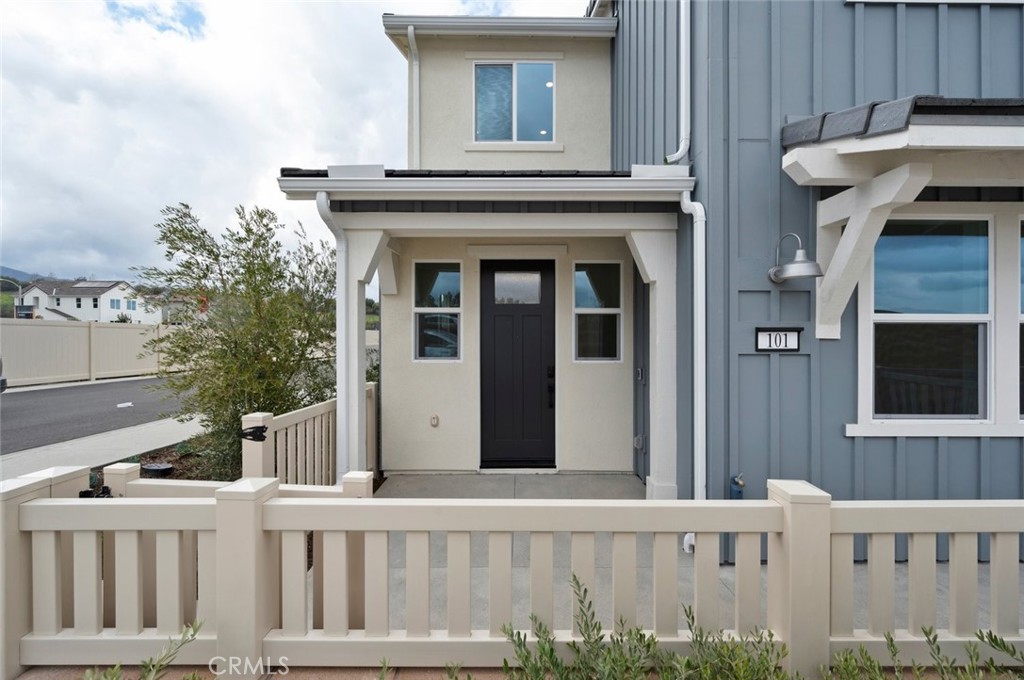 Welcome to 3959 Lavine Way #101, nestled in South Corona’s Averly at Bedford by Tri Pointe Homes where modern living meets scenic serenity. This end-corner residence offers the perfect blend of style, comfort, and efficiency with paid-off solar, ensuring energy savings from day one. Set against the breathtaking Santa Ana Mountains, this Farmhouse-style home exudes warmth with wide-plank laminate flooring, upgraded carpet, and White Shaker cabinetry throughout. The open-concept design creates a bright and spacious atmosphere, enhanced by recessed lighting and smart-home features. Enjoy seamless control of your locks, thermostats, lighting, and garage via HomeSmart Technology, supported by a Mesh WiFi system for full-home connectivity. The EV-charging ready garage adds convenience for eco-friendly living. Located within the gated Bedford Master Plan, residents have access to resort-style amenities including The Hudson House clubhouse, pools, spa, BBQ areas, and community events. Just minutes from Bedford Marketplace, local dining, and entertainment, this home offers both tranquility and accessibility. Experience a connected, sustainable lifestyle surrounded by natural beauty — welcome home to Bedford Community.