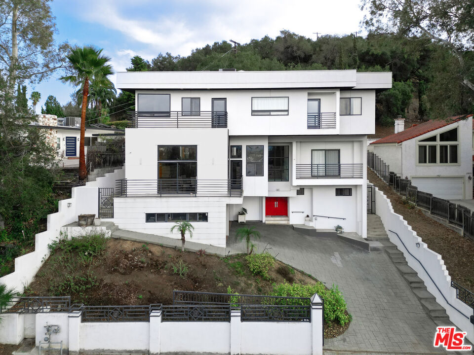 Multi-level architectural home with soaring 20-ft ceilings, open living spaces, and bold design elements available for lease. Enjoy panoramic city and hillside views from multiple balconies, relax by the pool and spa, or unwind in your private wine and cigar room. Features include an original Zeyko kitchen with Gaggenau appliances, a grand primary suite with fireplace & spa bath, guest/staff room, laundry, and gated entry. Distinctive layout with many levels and steps ideal for those who appreciate unique architecture and entertaining spaces. Minutes to Hollywood, Studio City, Universal & Burbank. Contact LA2.