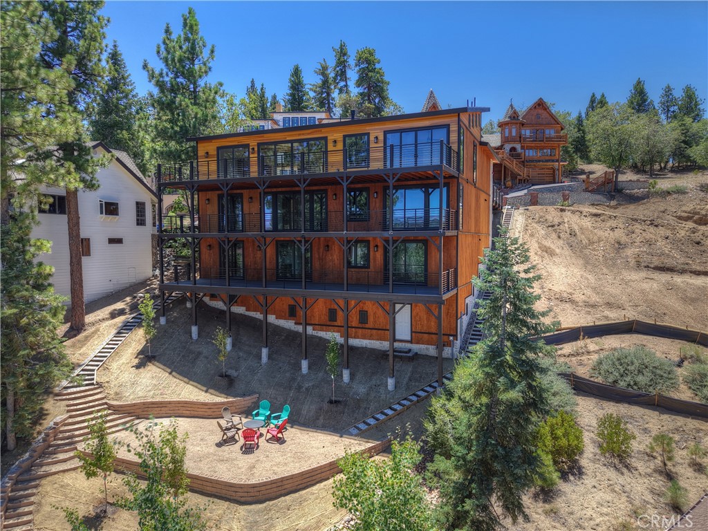 Located in sought-after Ironwood Estates, this magnificent BRAND NEW CONSTRUCTION is strategically positioned just behind the Village on a STREET-TO-STREET lot and boasts BREATHTAKING VIEWS of BIG BEAR LAKE! Prime location with just a short drive to the Village, restaurants, lake and ski resorts, this rustic contemporary home is truly stunning ~ As you enter the open living room, you’ll be immediately drawn to the panoramic lake views ~ Large open living room and kitchen with big Anderson picture windows ~ Knotty alder tongue and groove ceilings, walls and doors, lots of cabinetry with a center island, stainless steel appliances (Decor fridge, range, microwave, & dishwasher) and granite slab counters ~ Primary suite on main floor with the fireplace and ensuite bathroom with barn door ~ Huge family room downstairs perfect for entertaining large groups with potential for a movie theater (prewired) plus another 3 bedrooms, and a gathering area and bedroom on the bottom floor (a total of 3 suites – 1 on each floor) ~ Separate laundry room ~ Wine cellar ~ Convenient level entry to an oversized 2 car attached garage ~ Other modern amenities include a tankless water heater, fire sprinklers, electrical wiring in the garage for EV charging, and solar panels (owned, not leased) ~ Expansive decking with views of the lake, mountains and valley ~ Additional off-street parking on back side of the property with a newly terraced yard ~ Home was just recently completed ~ Come experience everything this extraordinary brand new home has to offer!