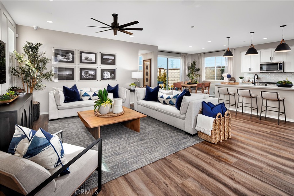 Highly desirable open concept Dwell at New Haven PLAN 3. 1 or 2 last PLAN 3’s at New Haven- Detached Home with LOWER RATE AND SOLAR INCLUDED! This upgraded 4-bedroom single family detached home offers a first-floor bedroom & full bathroom with walk in shower. Must see kitchen with oversized island! Corner home with lots of windows and private yard to enjoy. Kitchen features modern cabinets, quartz kitchen countertops, designer backsplash and Whirlpool gas appliance package. Spacious great room includes pre-wiring for surround sound and to easily mount TV on wall. Private yard off great room is the perfect space for entertaining, family & pets. Upstairs, your loft/bonus room greets you at the top of the stairs. Bonus room is the perfect space for a home office, homework station or second TV room. 3 bedrooms are upstairs, with 2 full baths and your laundry room. Upgraded flooring includes wood laminate flooring throughout your first floor; with upgraded carpet in all bedrooms and upgraded tile in your bathrooms. Purchase brand new to enjoy builder warranty, smart home technology and energy efficient construction. Centrally located to shopping, new schools, all of Southern California’s freeways and Ontario International Airport. Come see why New Haven has been recognized as top master planned community in the US! New Haven residents enjoy 2 indoor clubhouses, open air clubhouses, 6 refreshing swimming pools, 3 jacuzzi’s, kids splash zone, pickleball, basketball, BBQ pavilions, firepits, playgrounds with zipline & more! On-site lifestyle director. Walkable community steps from New Haven Marketplace with restaurants, brewery, yoga & shopping. Home will be ready in December.