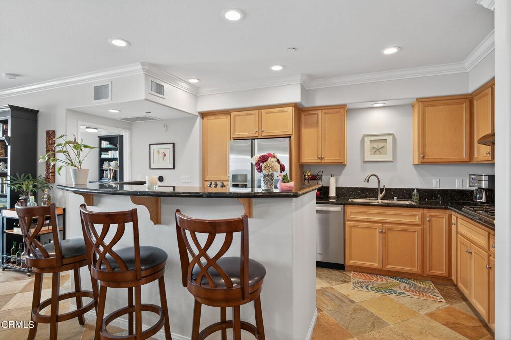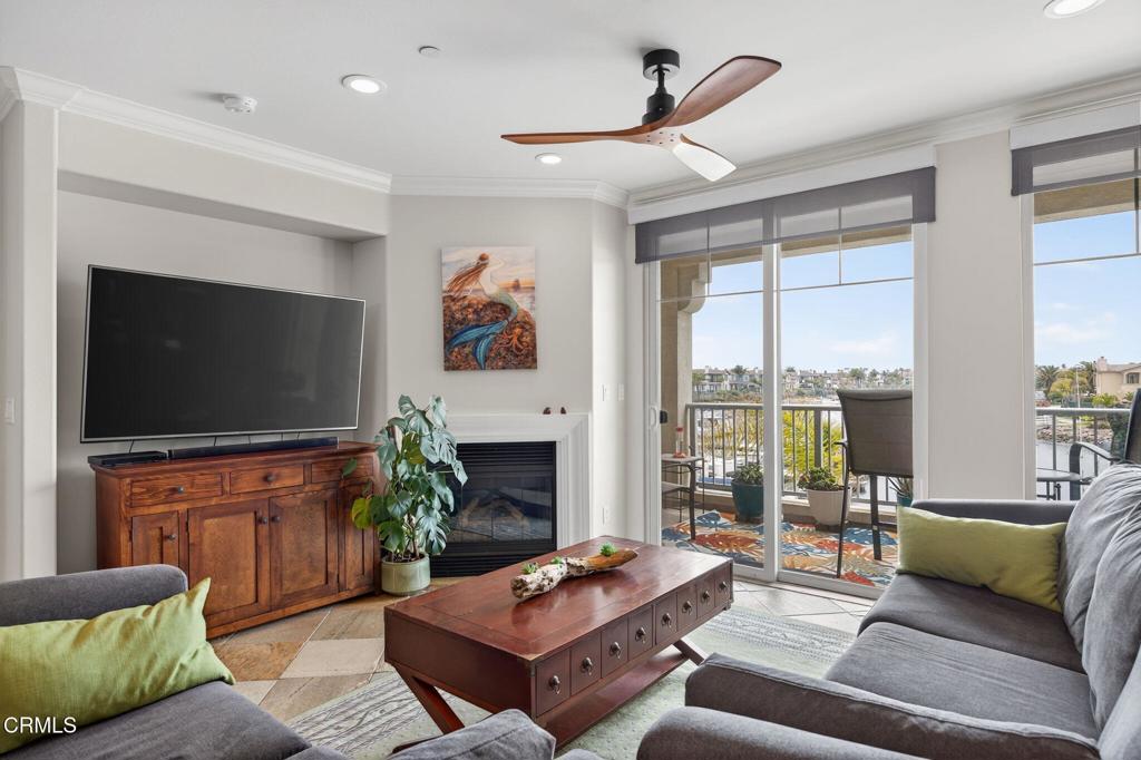 Enjoy unobstructed views of the Channel Islands Harbor from nearly every room. Perfectly capturing the essence of coastal living. The most desirable southern exposure floods the interior with natural light. Features include kitchen with a center island high-top bar, granite countertops, stainless steel appliances, and elegant slate flooring through the main living areas The living room boasts a cozy fireplace, large slider with breathtaking views. Both bedrooms include en suite bathrooms, master walk-in closets, and mirrored wardrobes. All with scenic water vistas. Condo is located on the first floor with a single-level layout.Community Amenities: Residents have access to gated subterranean parking with a storage area and two designated side-by-side spaces, a beautiful spa, and a lush landscaped courtyard with seating and fountain areas.Schedule your viewing today!