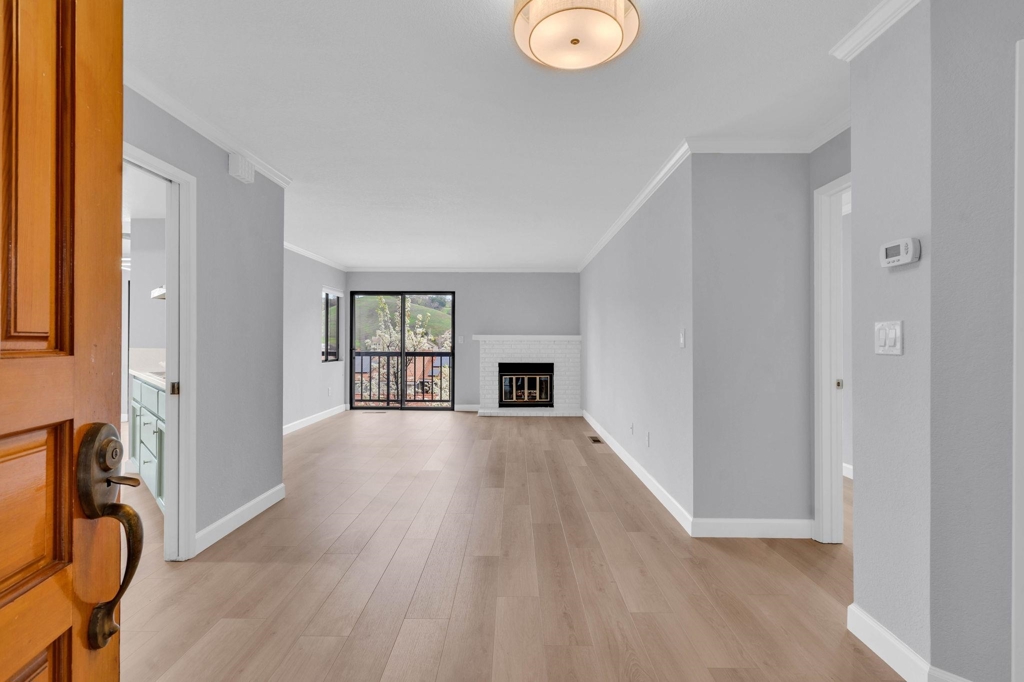 Beautifully updated Doral model with bright and open view. Light filled Corner unit in popular Fairways area. Very convenient semi-level and steps to garage. Formal living room with fireplace. Separate dining room. Updated kitchen with quartz counter, new fixtures and appliances and breakfast nook. New laminated flooring throughout Tastefully updated bathrooms with new quartz counter, new LED mirror and lights, faucets, and toilets. Spacious laundry room with washer and dryer included. Master bedroom ensuite with wall to wall closets with organizers. Wrap around balcony with sliding doors from kitchen and living room. Garage parking with extra loft storage. HOA dues include exterior, maintenance, security, water, sewer, trash and amenities access.