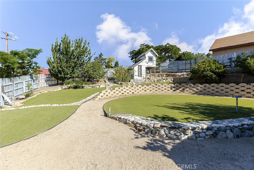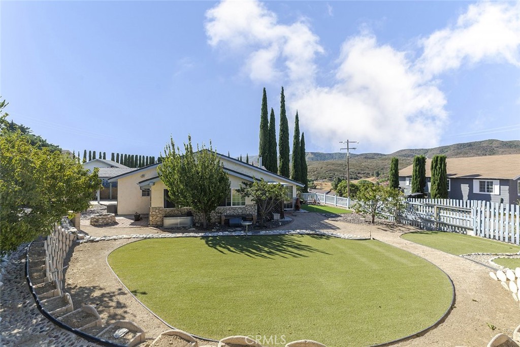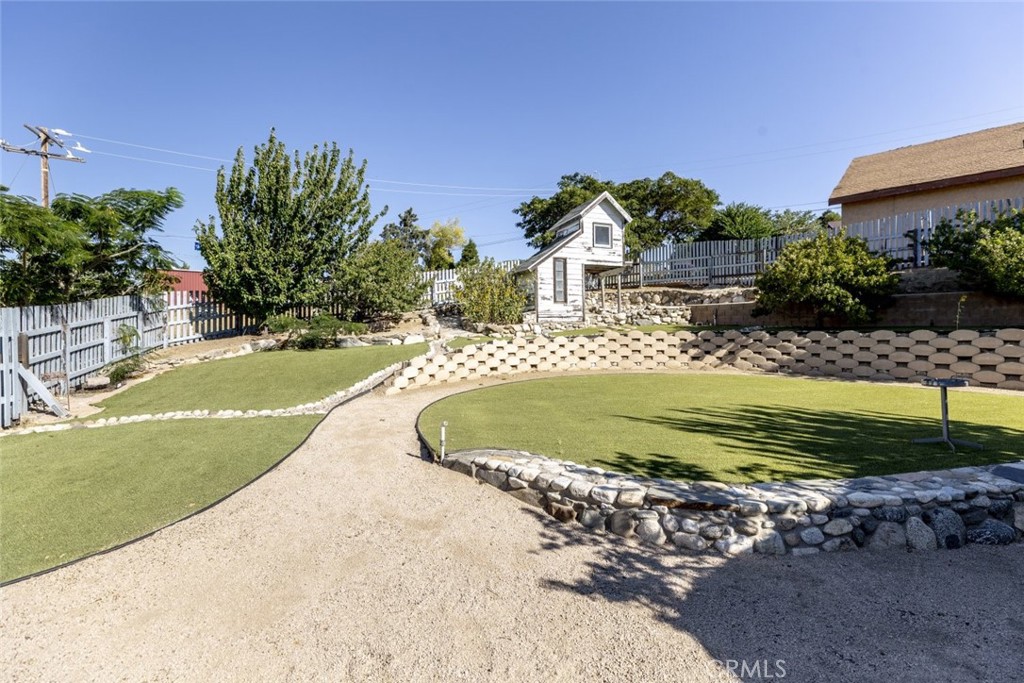 Nestled atop a quaint Lake Hughes mountain knoll, this beautifully upgraded 1,536 living area, single-family home sits on a spacious 8,964 lot at the end of a quiet cul-de-sac. Boasting breathtaking views of natural valleys, pine trees, the nearby golf course, and serene lake vistas, this property offers the perfect blend of comfort and tranquility. Inside, you’ll find a bright, open floor plan featuring tile flooring throughout, custom doors, and double-pane windows that enhance energy efficiency and natural light. The inviting kitchen is a chef’s dream with granite countertops, ample cabinet space, stylish backsplash, stainless steel appliances, and a window overlooking the lush, landscaped yard. The spacious living room is the heart of the home, complete with dual ceiling fans, recessed lighting, and a cozy fireplace for relaxing evenings. A large, light-filled recreation room offers versatile space for work, play, or entertaining. Practicality meets style with a dedicated laundry room featuring organizational shelving. Ceiling fans throughout keep the home comfortable year-round. Outside, enjoy a newly updated roof covering a relaxing jacuzzi tub, artificial turf lining a private mini-golf course, a custom playhouse, and abundant space for a fruit plantation or gardening. The beautifully landscaped yard and serene mountain backdrop create an idyllic outdoor retreat. Experience peaceful living surrounded by nature’s beauty while being close to community amenities and recreational opportunities in Lake Hughes.
