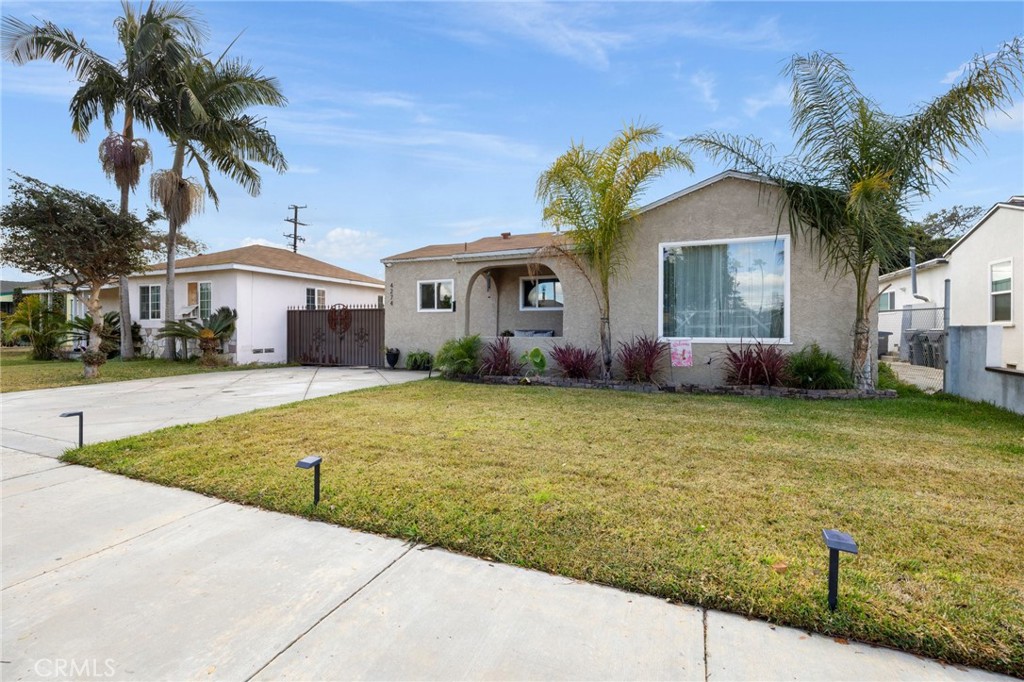 Nestled in the heart of Lynwood, this beautifully updated 2-bedroom home sits on a spacious 6,030 sqft lot – offering a perfect blend of comfort, style, and versatility. Step inside to discover a recently remodeled interior that boasts modern finishes including wood-look tile flooring, recessed lighting, central heating & AC, and brand-new windows. The open-concept living and dining area is perfect for hosting friends and family, creating an inviting atmosphere for gatherings of all sizes. The bright kitchen is a true highlight, featuring granite countertops and ample cabinet space for all your culinary needs. Step outside to the large backyard, which offers a covered patio and lush turf – providing the ideal setting for outdoor entertaining or relaxing in your private oasis. The detached 2-car garage is a standout feature, offering incredible potential for conversion into an ADU (Accessory Dwelling Unit), especially with the generous lot space. Parking will never be an issue with a new driveway in the front and extra parking behind the gate, leading directly to the garage. Perfectly located near shopping, schools, and easy access to the 710 and 105 freeways, this home offers the ideal combination of comfort, convenience, and potential. Don’t miss out – homes like this don’t last long. It’s the opportunity you’ve been waiting for! Schedule your tour today!