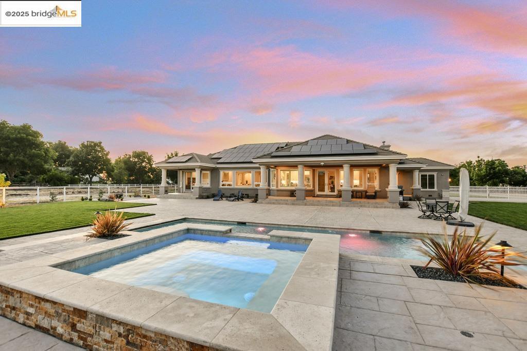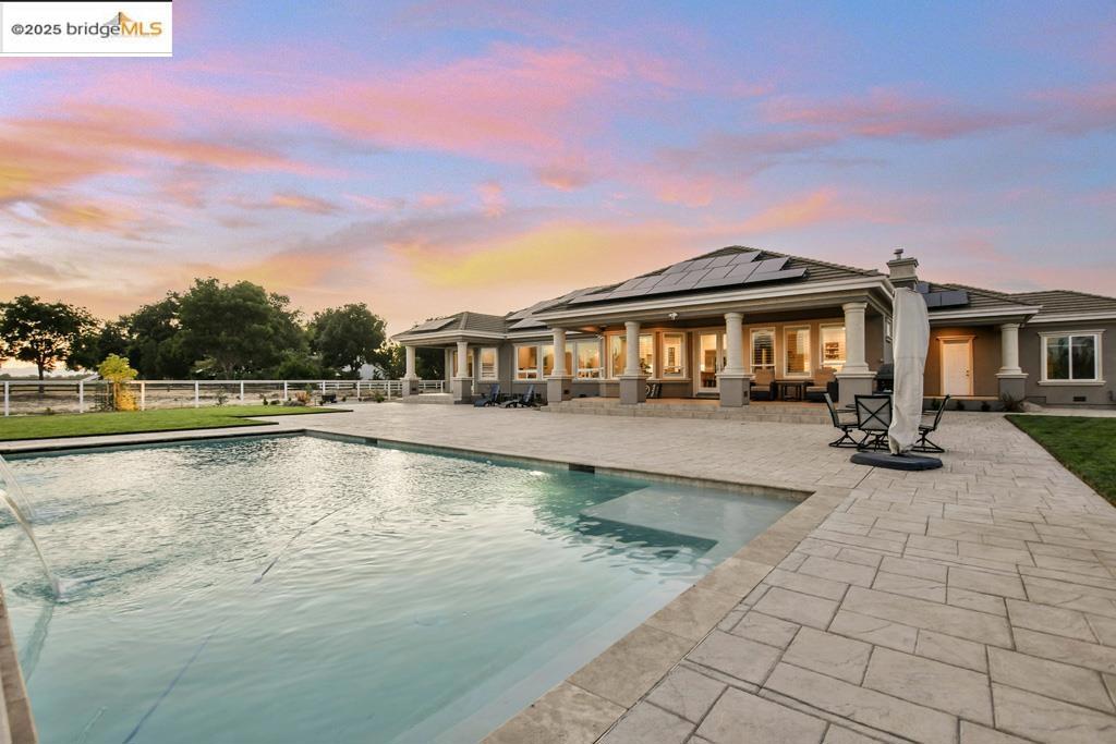 Custom home ranch community hard to find, centrally located to Downtown Brentwood and the CA Delta Waterways. This exquisite custom home, was just contracted to be even better then when it was brand new by the builder. Unheard of long, concrete stamped driveway, leads you to parking of all your vehicles. The beautiful entry will stun you at the entry as the wall of windows and the imported Italian “wood look” tile (7 ft by 14 inch planks) is not only high end and contemporary but functional. The open concept lives here, huge family room, dining room and living room but the kitchen will be loved by all chefs and entertainers. including the sub zero professional series 48inch refrigerator, GE monogram appliances 48 inch stove top with griddle, double French door over, microwave drawer, warming drawer and beverage fridge and pot filler. Still more, how about the bar area The bedrooms you will love they are all ensuites with new Shaw 4 carpet with cork pad. sub zero prof 48inch refrigerator, GE monogram 48 inch stove top with griddle, double French door over, microwave drawer, warming drawer, pot filler and huge Quartz island. Amazing pool with sheer docents, covered entertaining areas and unobstructed views of Mt. Diablo. water softener w Ro system, new ADU, OWNED SOLAR!