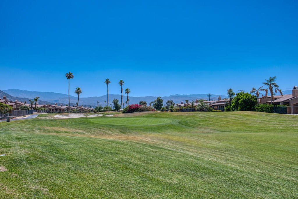 Golf Course View Home located on the 12th Green of Palm Desert Country Club! Charming 3 bed, 2 bath home with views of the golf course and surrounding mountains. The open floorplan is filled with natural light, enhancing the welcomingatmosphere. The galley kitchen features crisp white cabinetry and a stainless steel refrigerator. The living room is centered around a brick fireplace withbuilt-in shelves, adding a touch of elegance and functionality. Each of the three bedrooms is spacious, and the bathrooms are equipped with modernamenities. Exit outside to the backyard to find a covered concrete patio, ideal for outdoor dining and enjoying the scenic views. The lush grass area adds atouch of greenery to the outdoor space. Located just minutes from the Indian Wells Tennis Garden, this home also comes with the added bonus of no HOAfees. Don’t wait–book a tour today to see this wonderful home!