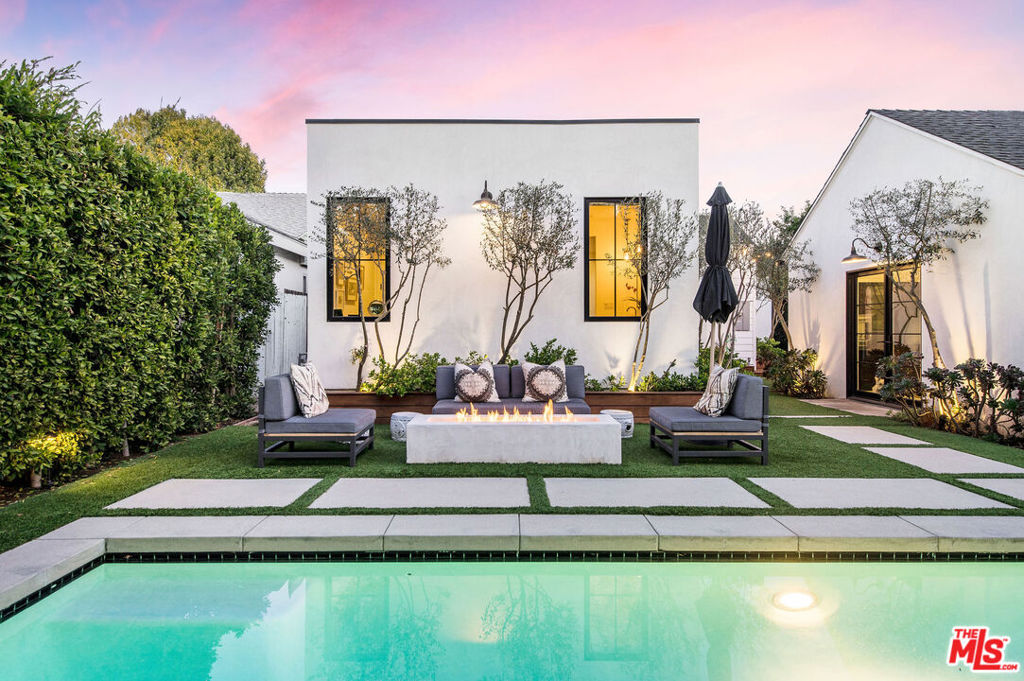 Beautifully reimagined 1940s East Coast traditional residence, meticulously expanded and finished with an eye for both craftsmanship and modern sophistication. The heart of the home is an open-concept living and dining area, anchored by multiple living spaces that offer effortless flow for relaxation and entertaining. A custom kitchen, appointed with top-tier finishes including Viking Pro Line appliances and artisan fixtures, seamlessly integrates with the communal spaces, making it perfect for both casual gatherings and formal occasions. Each of the three bedrooms boasts a spa-inspired en-suite bath, embodying tranquility and elevated design. The primary suite is a true retreat, featuring an expansive walk-in closet and a custom barn door that leads to a sumptuous bath. Floor-to-ceiling, aluminum-clad Lincoln doors open to reveal direct access to the lush backyard. Outdoors, the property transforms into a private oasis framed by high hedges. A resort-style pool with a jacuzzi spa serves as the centerpiece, complemented by a fire pit lounge and ample seating areas designed for alfresco entertaining. The detached finished garageaccessed via bespoke custom carriage doorsoffers flexible use as a studio, office, or guest suite.Additional design highlights include curated fixtures from Rejuvenation Hardware, SchoolHouse Electric, and Emtek, as well as furnishings valued over $100,000, making this turnkey offering truly one-of-a-kind. Situated within the award-winning Colfax Charter School district, this residence is an exquisite blend of character, privacy, and modern luxury.