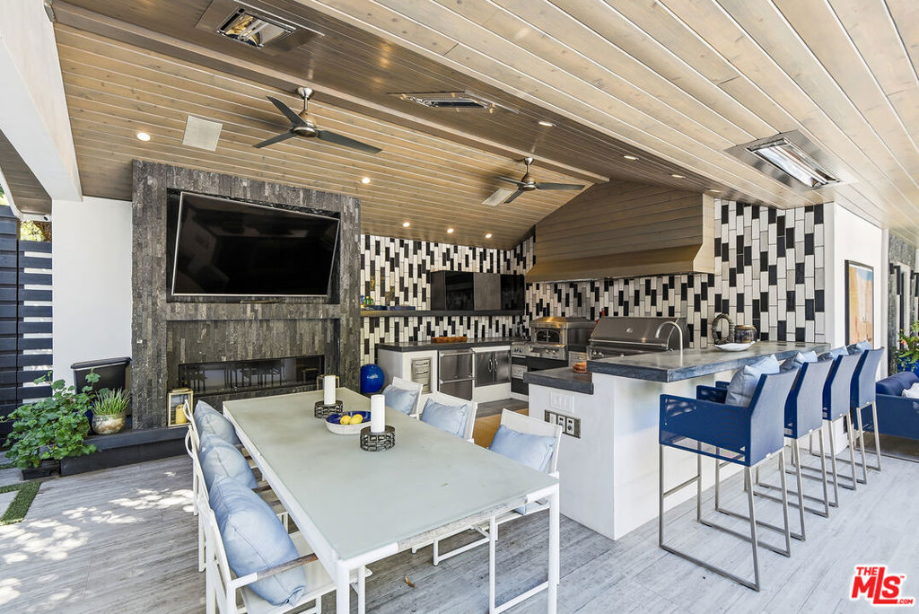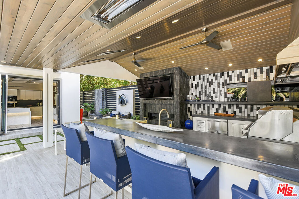 Supremely private Stately gates with imposing 25′ high hedges hide a true miracle of a home that serves as the ideal host for fantastic entertainment. State of the art Movie theater. State of the art Golf Simulator with cigar lounge that has humidifier filtration for fresh clean air. Bold designer choices abound – gorgeous on-trend fixtures and dynamic wallpaper coverings. Two downstairs en suite bedrooms, two other upstairs en suite large bedrooms. Another bedroom converted into a complete spa with wet and dry sauna and massage table. The other bedroom adjacent to the Primary suite has been opened to serve as a huge killer office. Upstairs laundry has been added to complement the downstairs laundry off the secondary staircase. This is truly a luxurious floorplan. La Cantina folding doors open to reveal an immaculate backyard that blows you away. Placid infinity pool reflects the subtle exterior lighting with various daybeds and conversation lounges surrounding cozy fire pits. The outdoor kitchen offers a veritable restaurant experience with the pizza oven, fireplace, TV and bar.