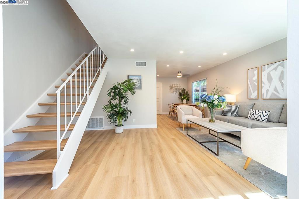 Welcome to this stunning townhome offering a bright and open floor plan with modern finishes throughout. Walk into a spacious living and dining room which includes a private patio off the living space – a low-maintenance outdoor area with a rich wooden pergola. A remodeled kitchen includes Shaker cabinets, stainless steel appliances and ample storage space. Conveniently offering an inside laundry area off the kitchen with washer/dryer. Two spacious bedrooms and newly remodeled bathrooms. Assigned parking located directly behind the home for easy backdoor entry. Additional upgrades include new laminate flooring throughout, new interior paint, recessed lights, newly remodeled bathrooms and more! A charming neighborhood conveniently located near top ranked Fremont schools and minutes from I-880/680, BART, shopping and restaurants at Pacific Commons and major employers of the Bay Area.
