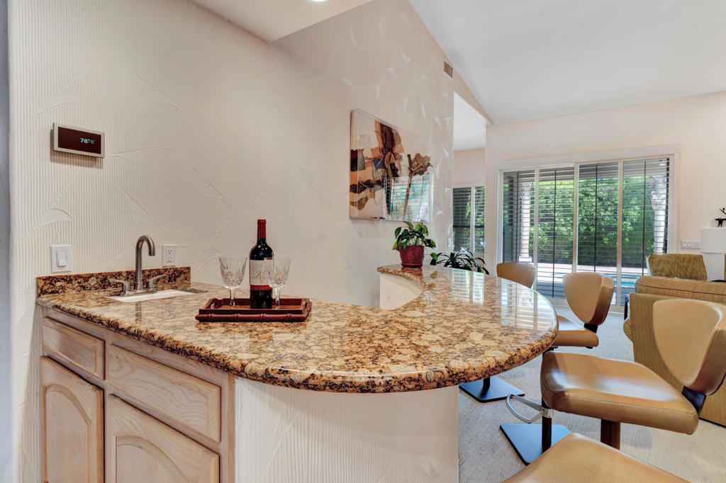 Located in the heart of the Coachella valley in Rancho Mirage, Mission Pointe is a gated community of only 52 homes that offers a community center, tennis court, 2 pickleball courts, fitness center and cable! This lovely home has over 3,100 sq. ft. of living space (includes 576 sqft bonus room) and is designed for comfort and entertaining. Recent improvements include newer HVAC (2 zones), water heater, saltwater pool and equipment, pool decking, custom cabinets in the garage, new garage opener and epoxy garage flooring. The light-filled interior features a spacious living room with fireplace, wet bar, and formal dining room, plus a dedicated den. The chef’s kitchen offers a large granite slab island with breakfast bar, newer stainless appliances, ample cabinetry, and two solar skylights for abundant natural light. A fully enclosed sunroom – perfect for relaxing or hosting guests year-round – is located just off the kitchen. Complete with a billiard table and flat-screen TV – the room adds 600+ sq. ft. of flexible space. A separate laundry room includes a sink and built-in storage. Retreat to the expansive primary suite featuring a private fireplace, walk-in closet, dual vanity, spa tub, and direct access to the backyard. Two additional guest bedrooms are both en-suite with walk-in closets, providing ultimate privacy and comfort. Step outside to your private backyard oasis: a saltwater pool and spa with new Pebble Tec finish, covered patio, a gas outlet for a BBQ and desert landscaping for low-maintenance enjoyment–all easily managed from your smartphone.