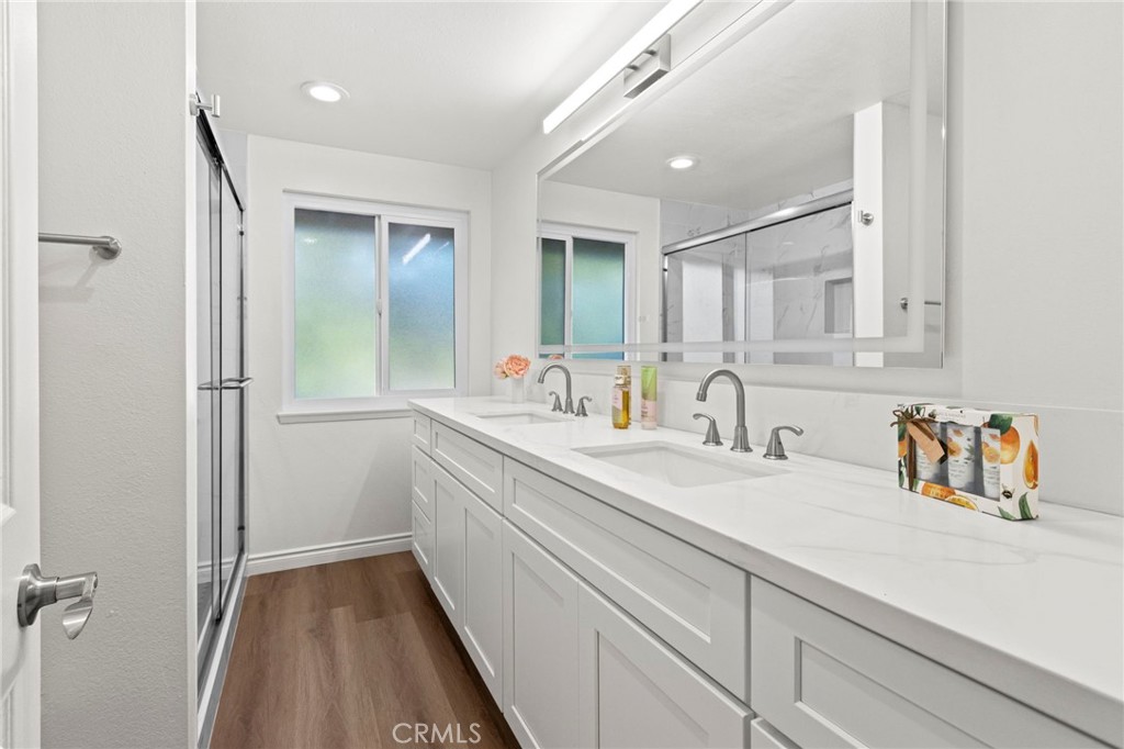 Welcome to this beautifully renovated 5 bedroom, 2.5 bathroom home in the heart of Brea. This spacious two story residence has been thoughtfully updated inside and out, offering modern comfort with timeless style. Step through the inviting double door entry into a light filled interior featuring new LVP flooring, recessed lighting, and fresh paint throughout. The sunken living room boasts a cozy fireplace and large windows that flood the space with natural light. A generously sized dining room opens through sliding glass doors to the newly landscaped backyard, perfect for indoor & outdoor entertaining. The chef’s kitchen is a true highlight with stainless steel appliances, stone countertops, custom cabinetry, and a window over the sink that frames the view. Adjacent to the kitchen, you’ll find an additional family room complete with a bar area and convenient laundry room. The updated powder bath rounds out the downstairs living space. Upstairs, a striking chandelier sets the tone as you discover five well sized bedrooms with new windows and ample closet space. The primary retreat includes an en suite bath and private patio, offering a peaceful escape. Outdoors, enjoy a brand new sod lawn, patio area, and fencing, creating a private space to relax or entertain. Brea Olinda Unified School District offers enriching Science, Technology, Engineering, Arts and Mathematics (STEAM) programs in elementary, junior high and high school. Located near Brea Mall, downtown shopping and dining, and easy freeway access, this home truly has it all.
