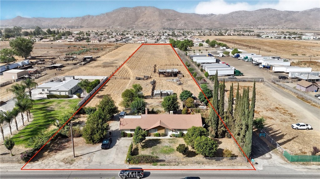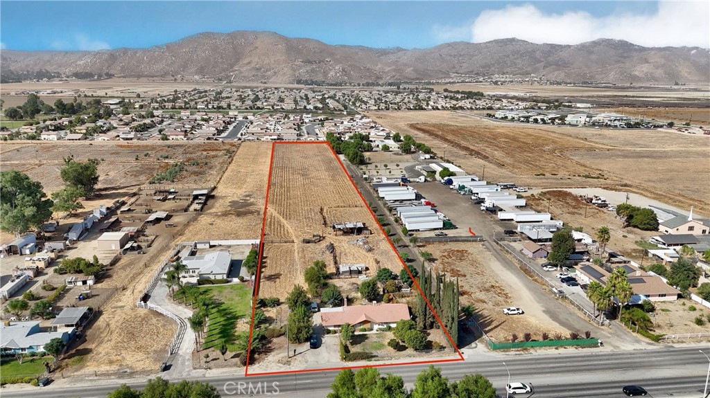 What a find! Almost 5 acres of flat land, located in the heart of San Jacinto/Hemet! The property features a single story home that has almost 1600 sf. of living space, 3 bedrooms, 2 bathrooms, living room, dining room, and bonus/laundry room. The opportunities are practically endless with this amazing parcel…let your imagination soar!